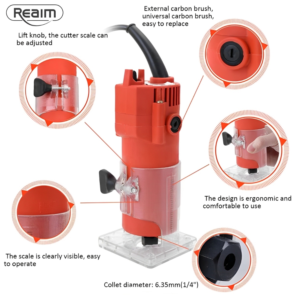 REAIM Palm Router Trimmer Wood Router 600W Power Tools Handheld Palm