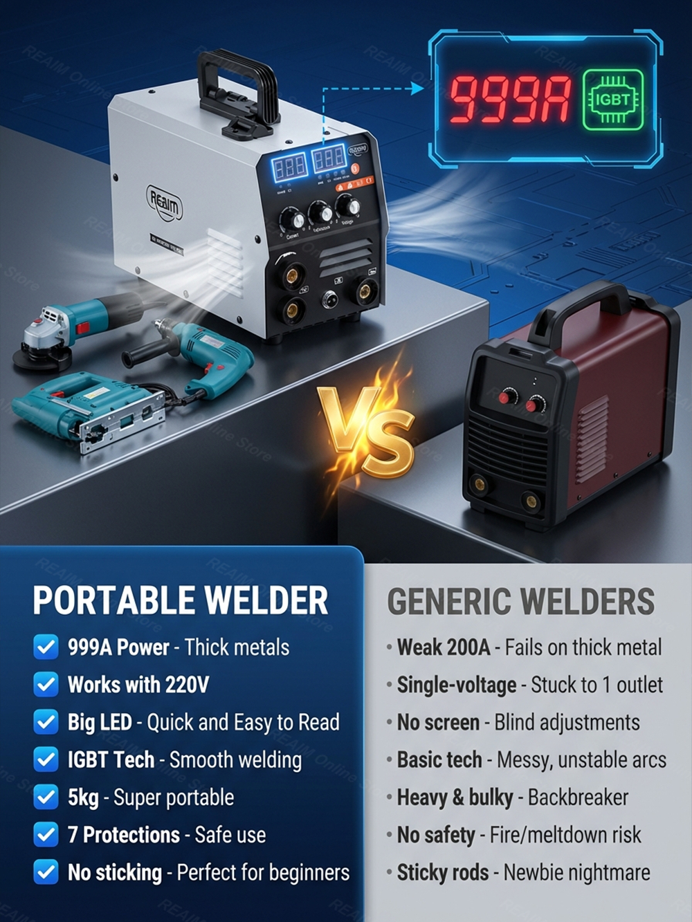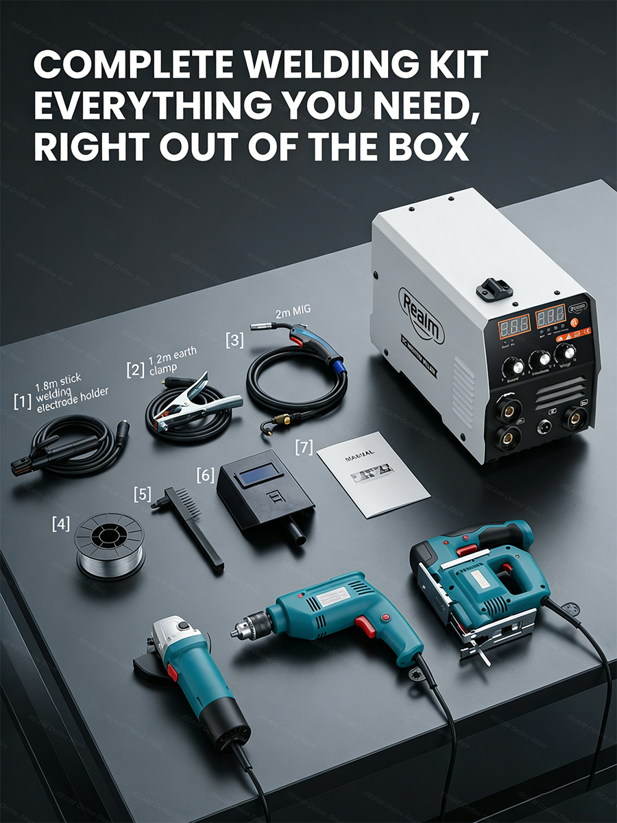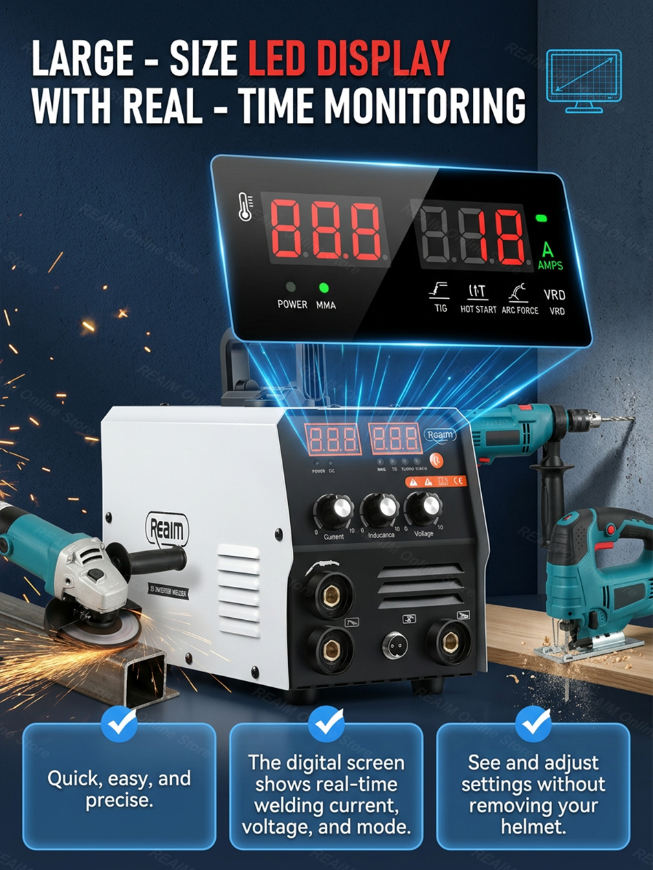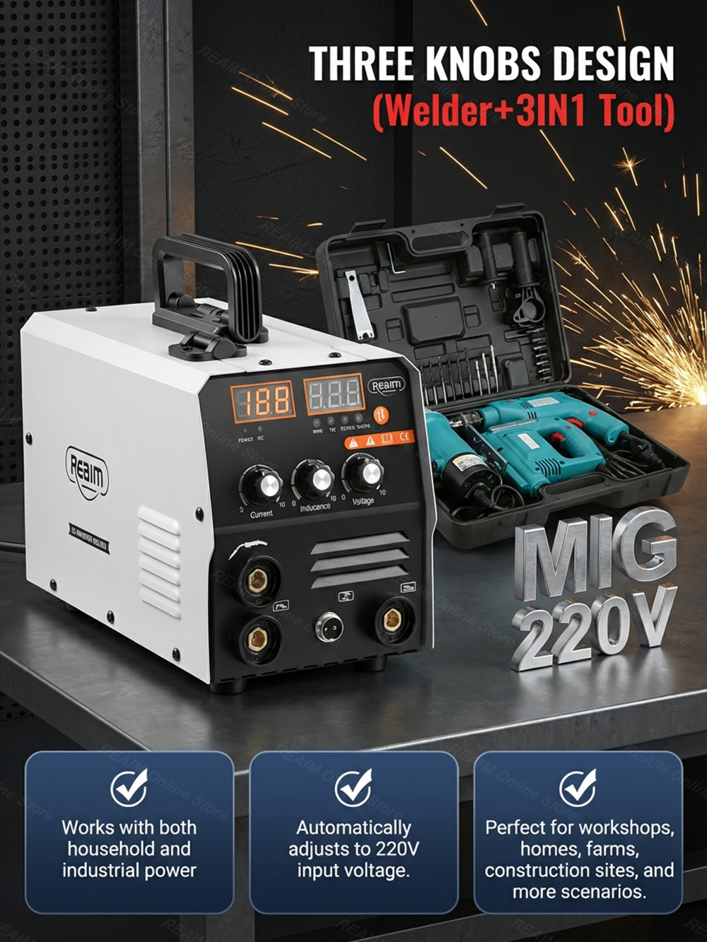 REAIM Welding Machine Inverter Portable IGBT Gasless Welder MMA TIG MIG200/250/400/500