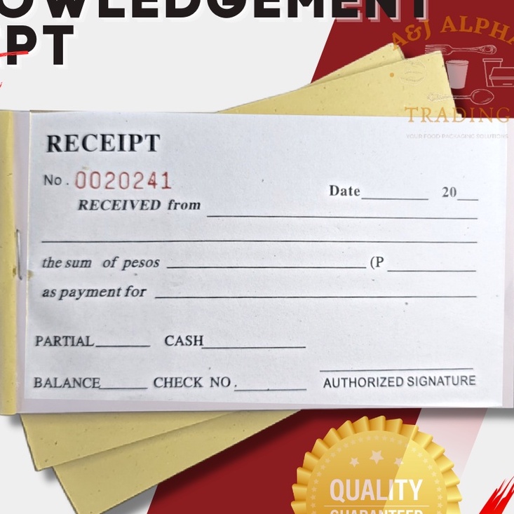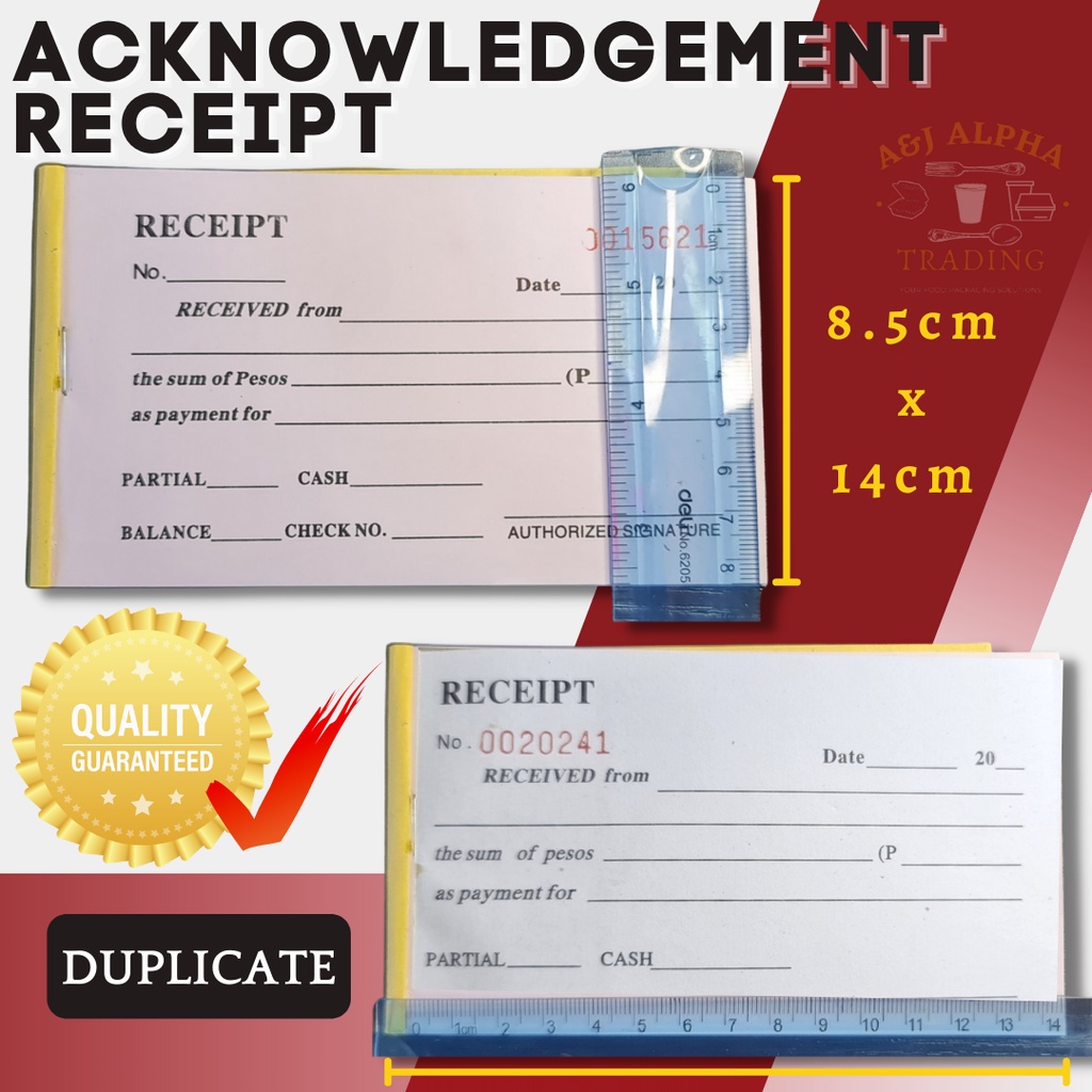 RECEIPT RESIBO Acknowledgement Carbonized 14cm x 8.5cm Duplicate