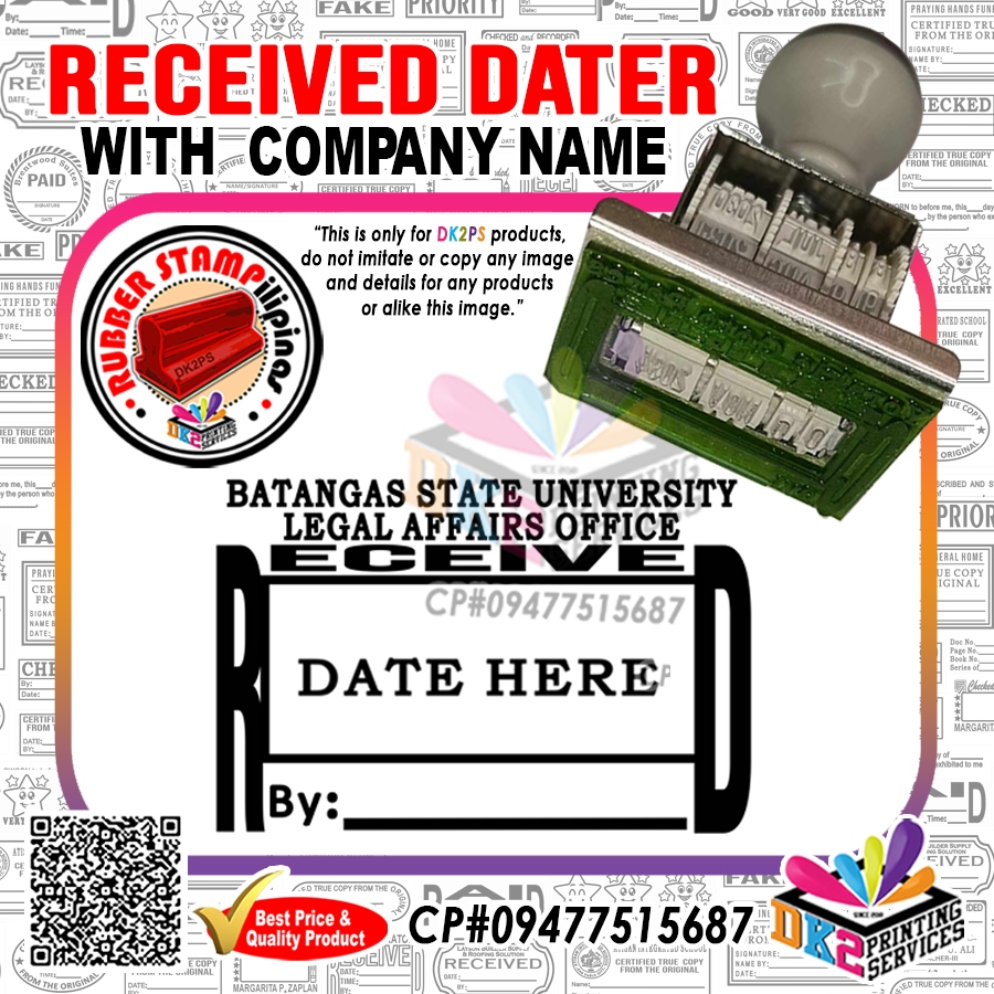 RECEIVED DATER with COMPANY NAME PERSONALIZED, CUSTOMIZED RUBBER STAMP "OTHER WORD IS AVAILABLE"