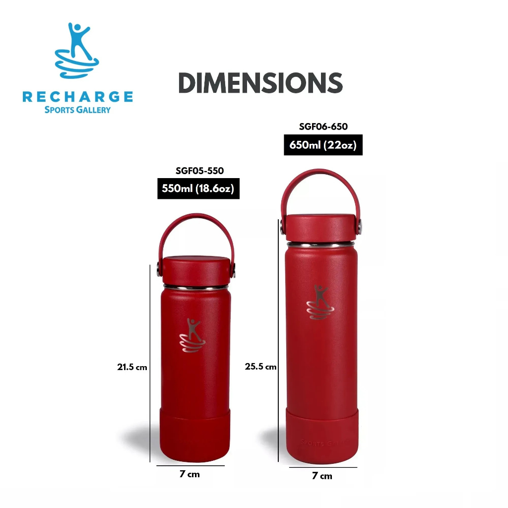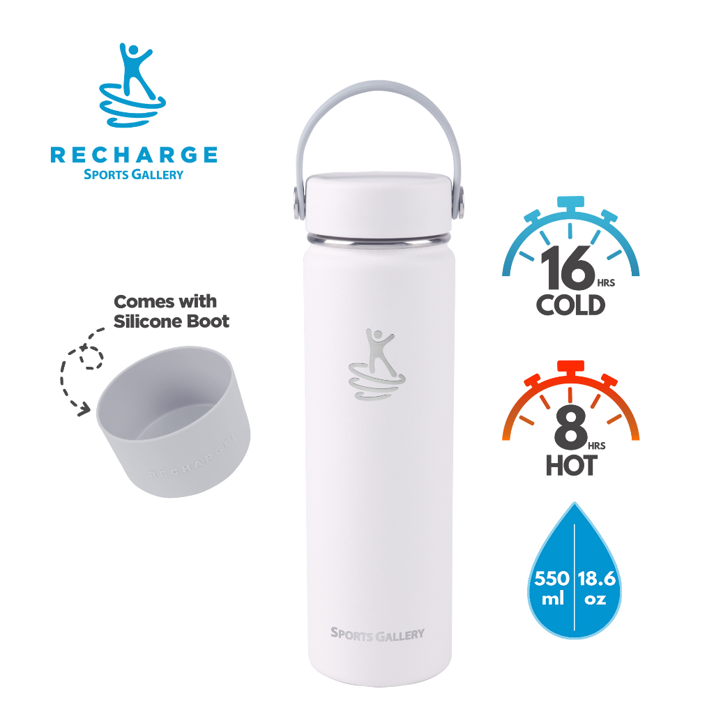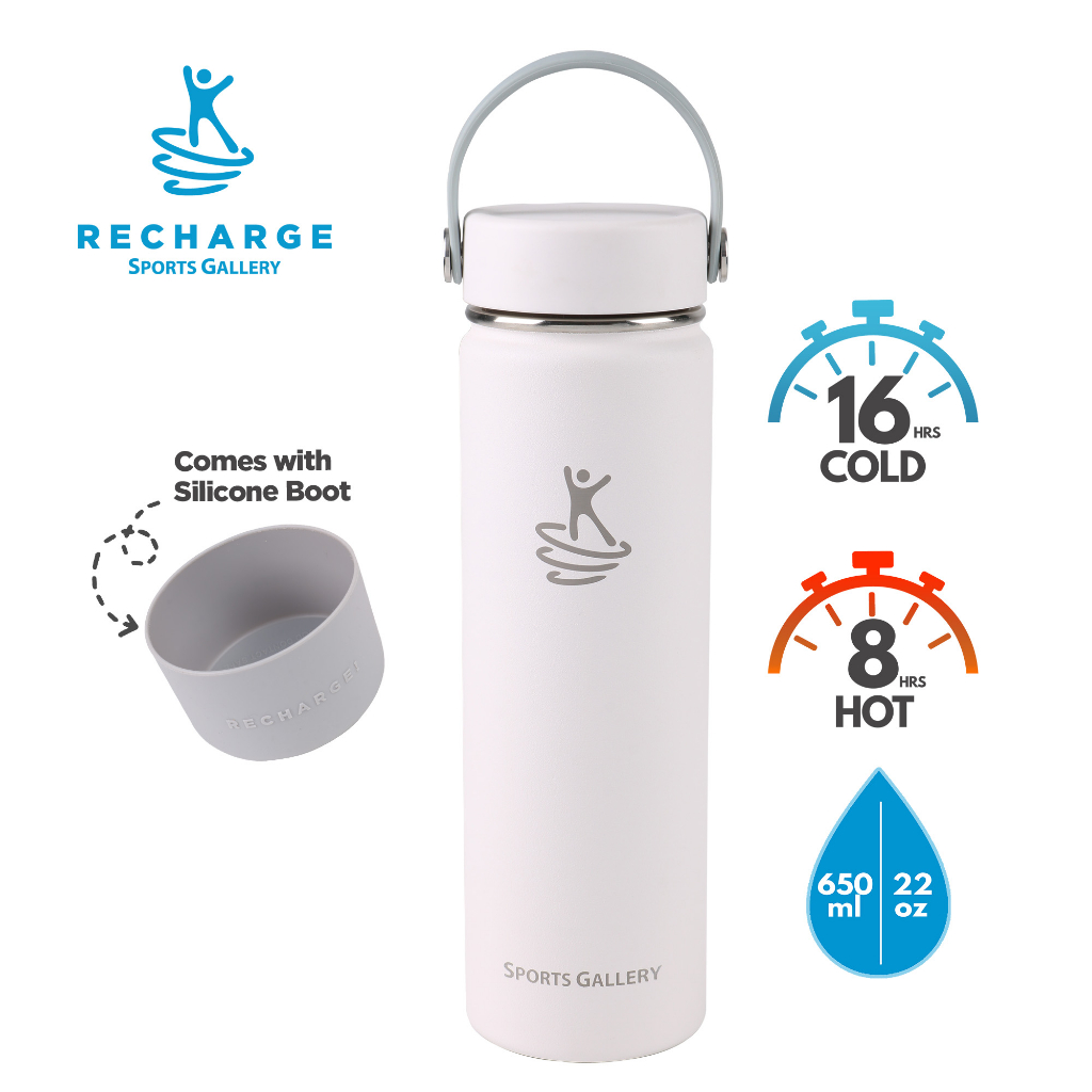 RECHARGE Wide Mouth Aqua Vacuum Flask with FREE Silicone Boot Sports Gallery Insulated Bottle