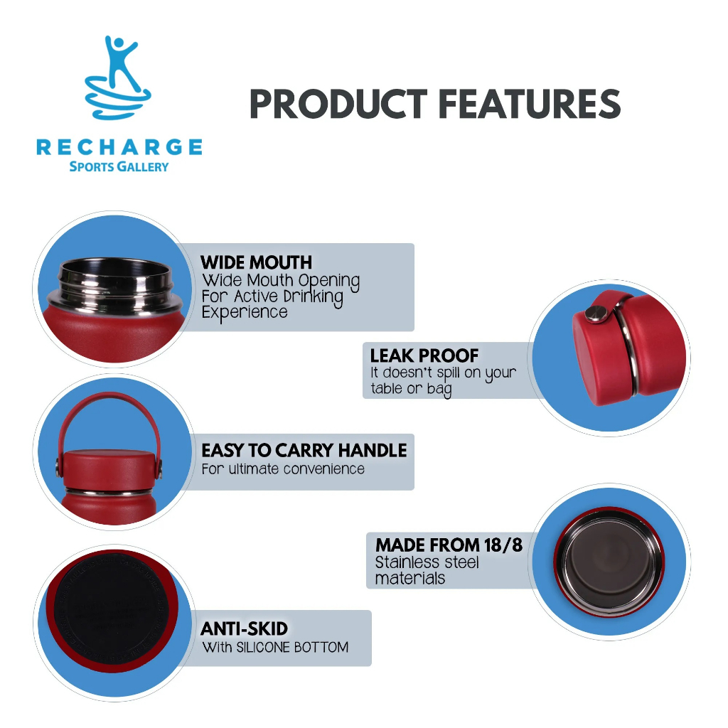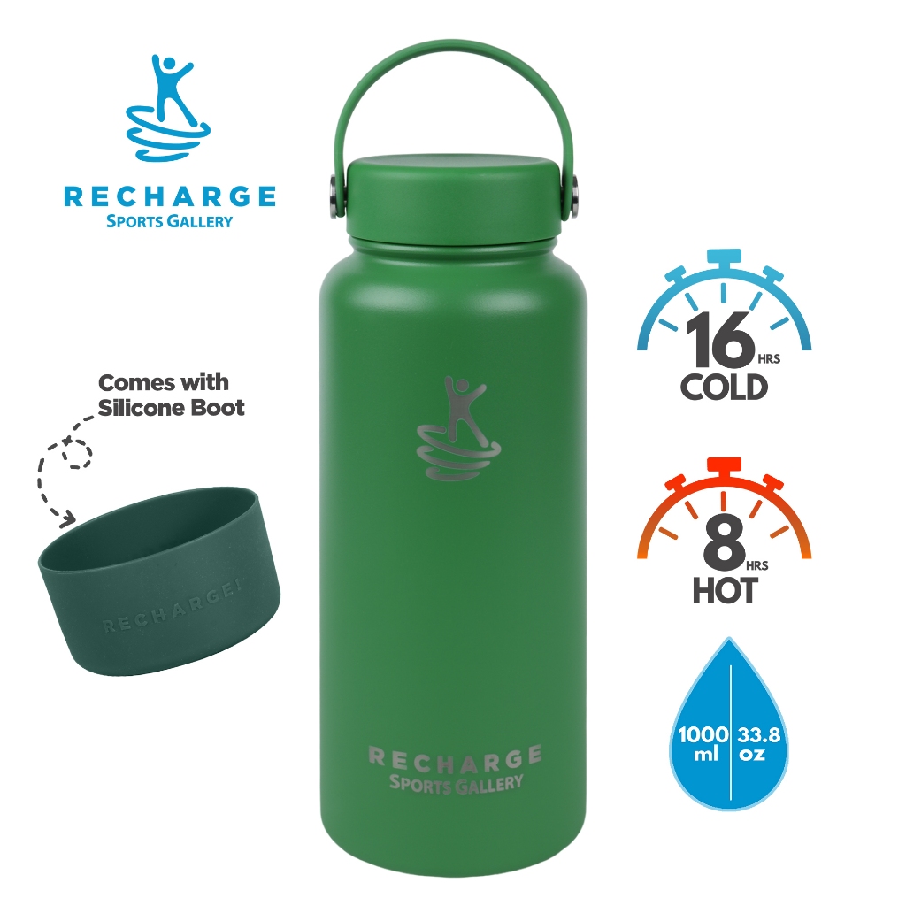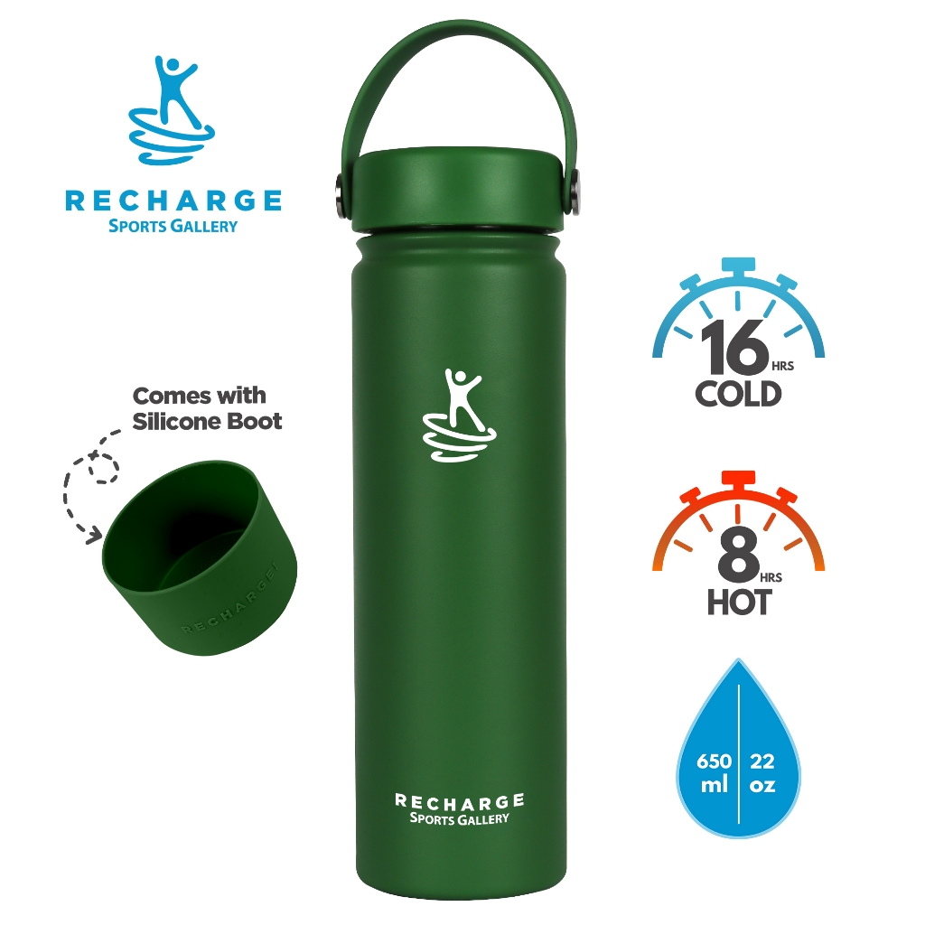 RECHARGE Wide Mouth Aqua Vacuum Flask with FREE Silicone Boot Sports Gallery Insulated Tumbler Clove