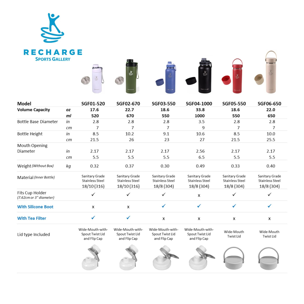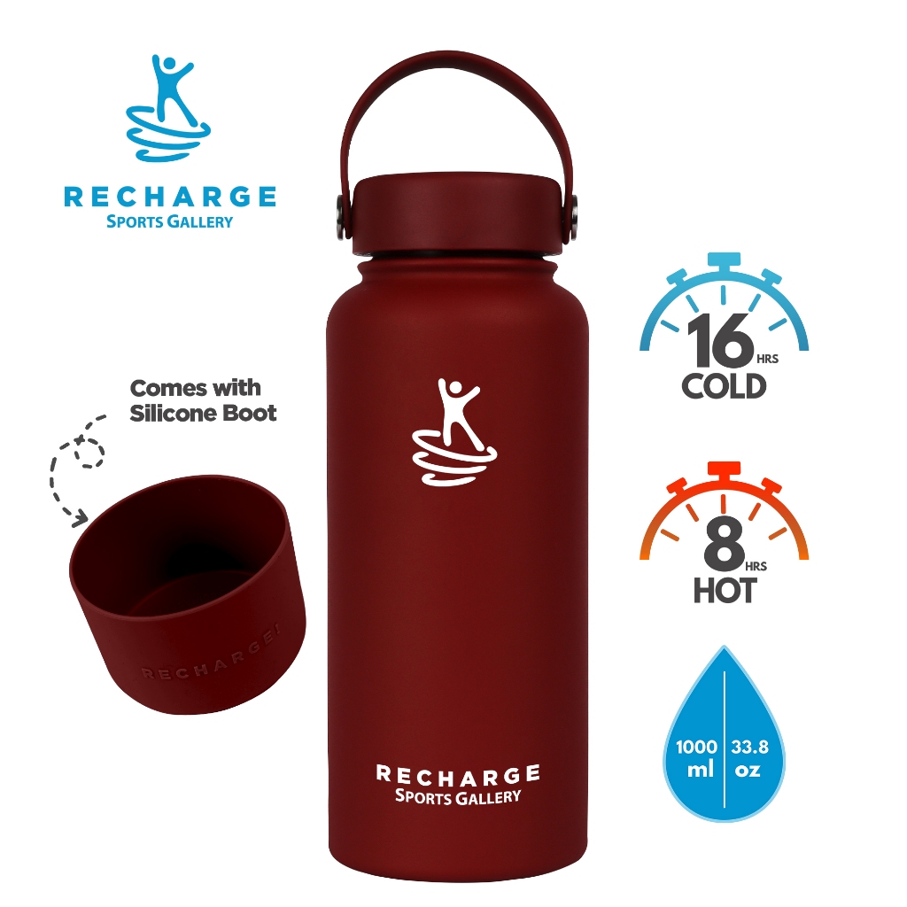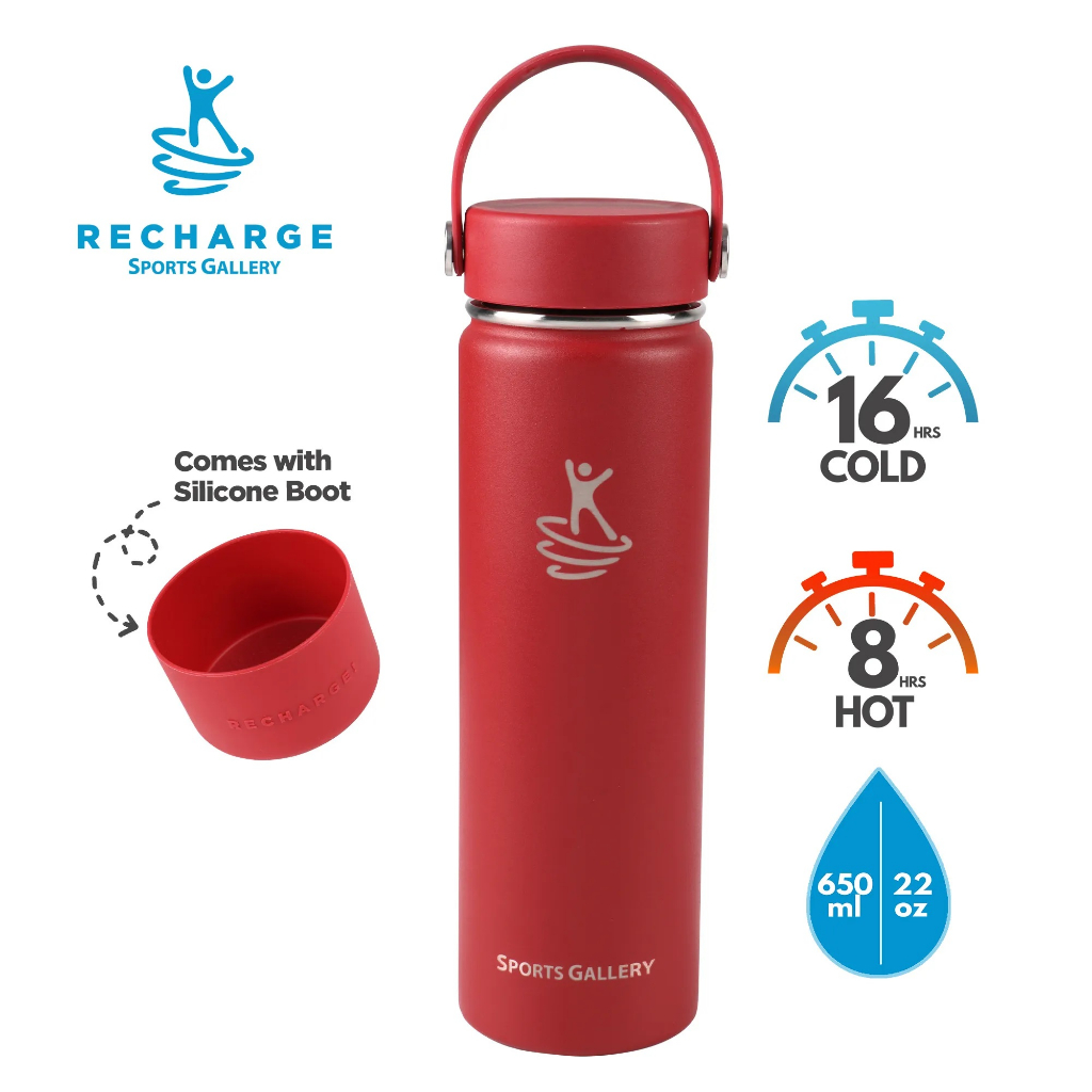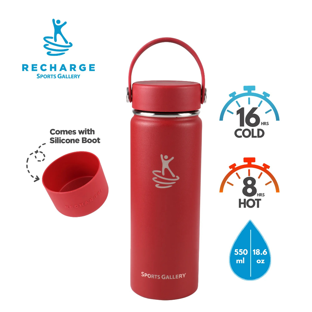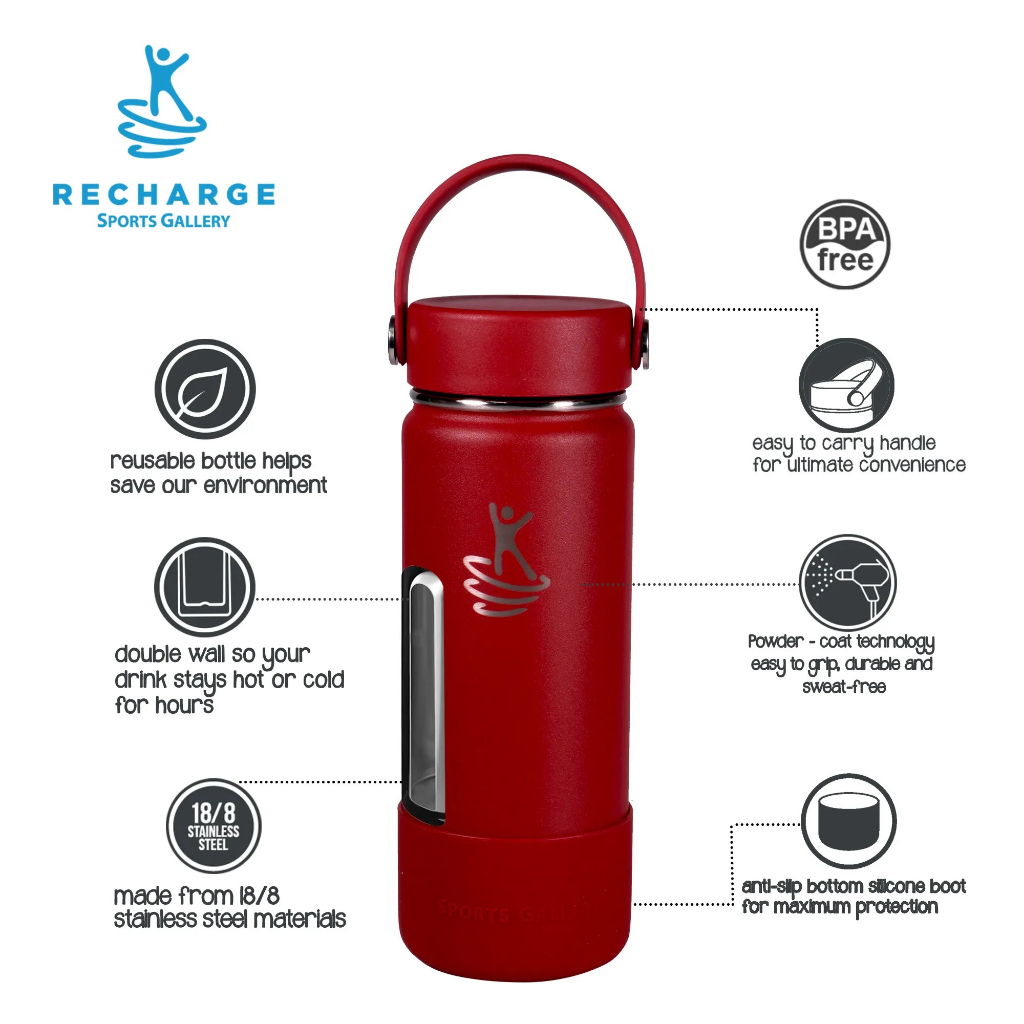 RECHARGE Wide Mouth Aqua Vacuum Flask with FREE Silicone Boot Sports Gallery Insulated Tumbler