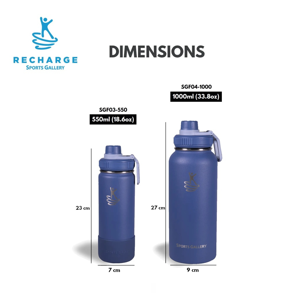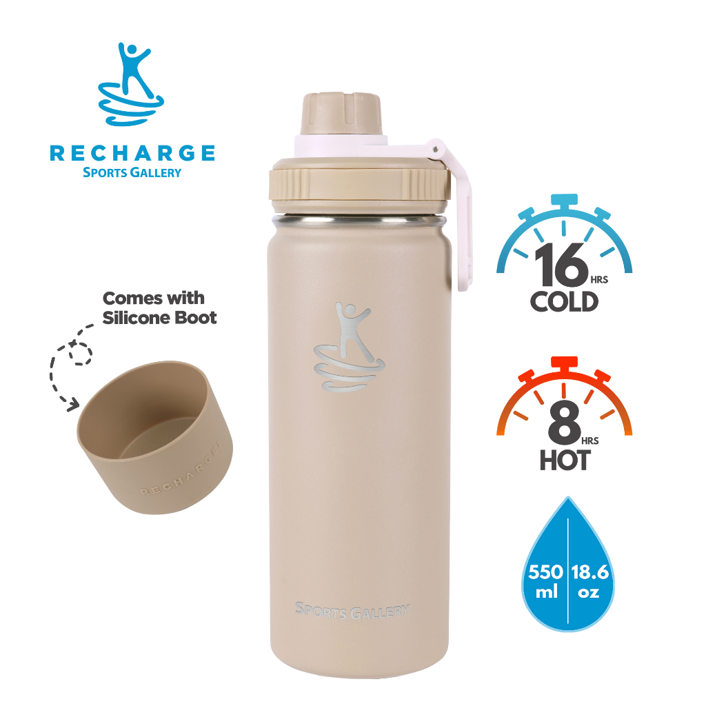RECHARGE Wide Mouth Aqua Vacuum Flask with FREE Silicone Boot Sports Gallery Insulated Tumbler