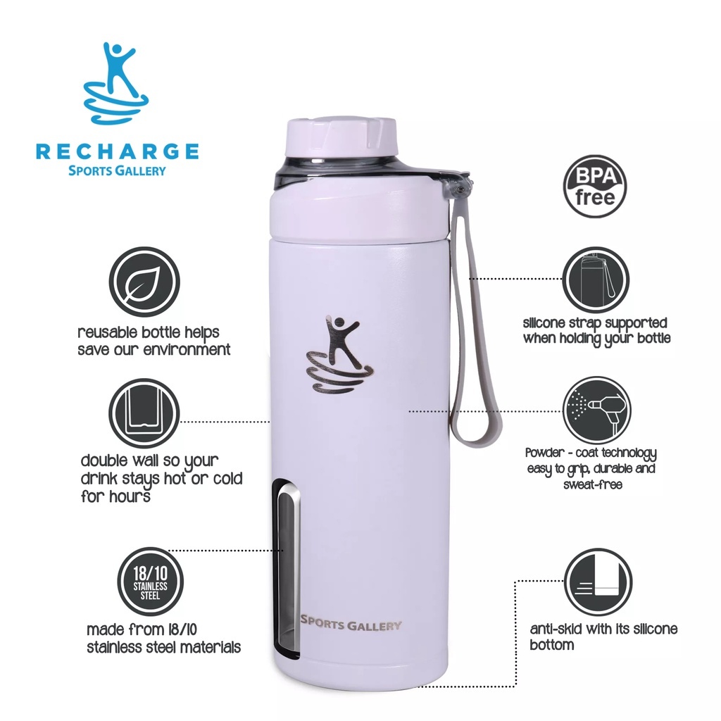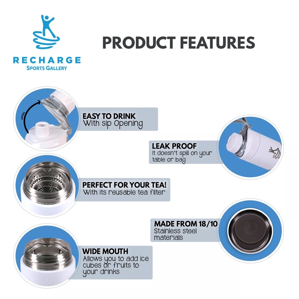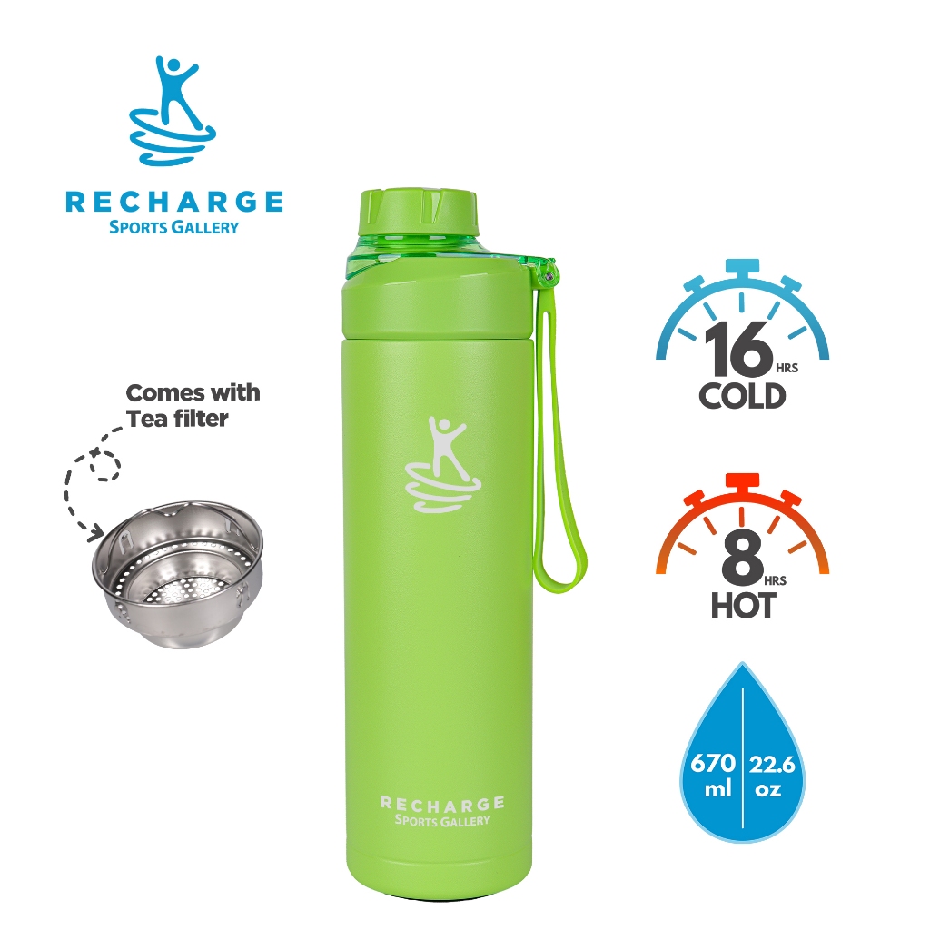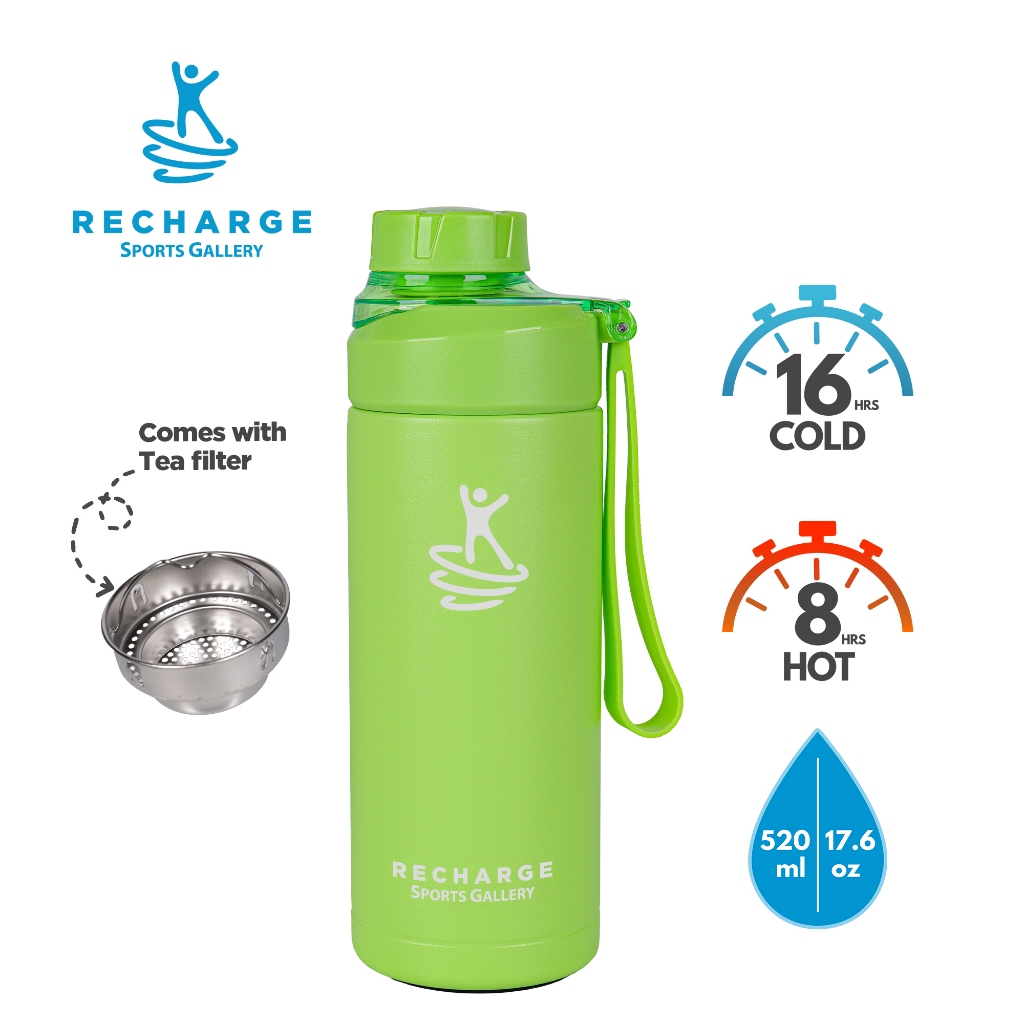RECHARGE Wide Mouth with Flip Cap Vacuum Flask Sports Gallery Aqua Tumbler Vacuum Insulated L.Green