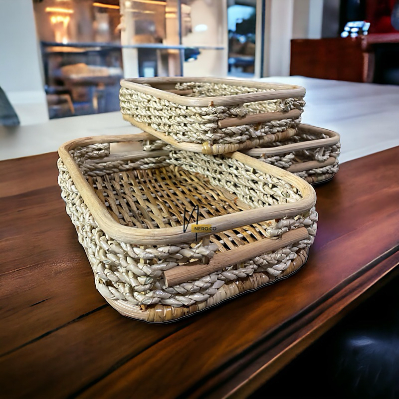 RECTANGULAR RATTAN Tray | MEDIUM | 35x25x10cm | Native Tray | Window Type Handle | Native Rattan