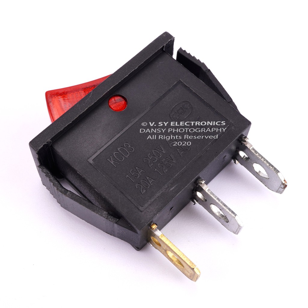 RED 3 Pins Rocker Switch Slim Type 16A SPST with LED Light Seesaw Toggle ON OFF DC AC Auto Motor