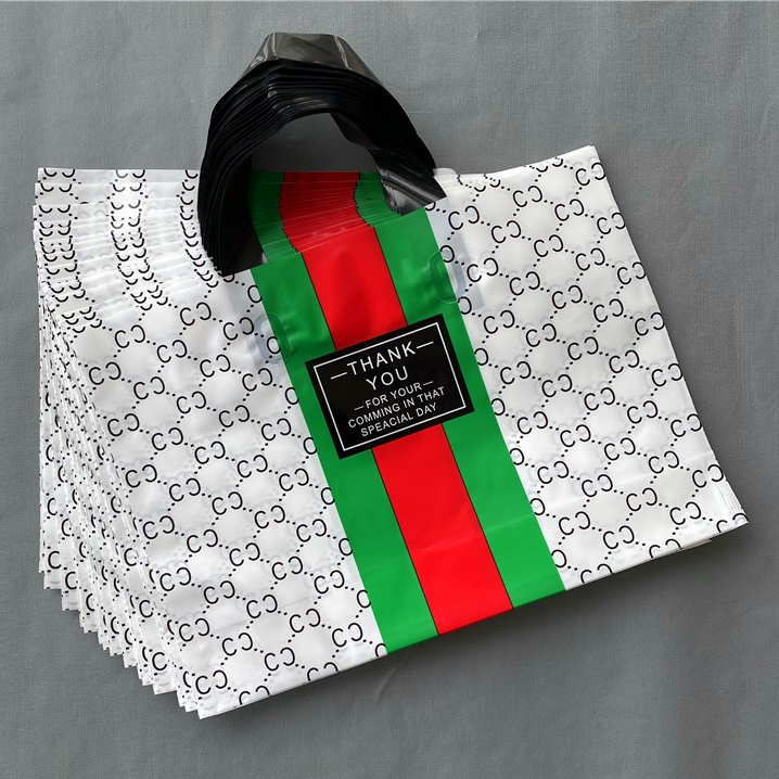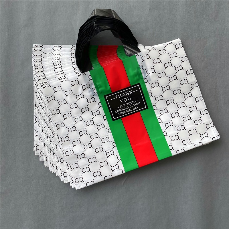 RED&GREEN Design Plastic Bag w/ Handle Expandable Bottom for Gifts, Souvenirs, Packaging (1pc)