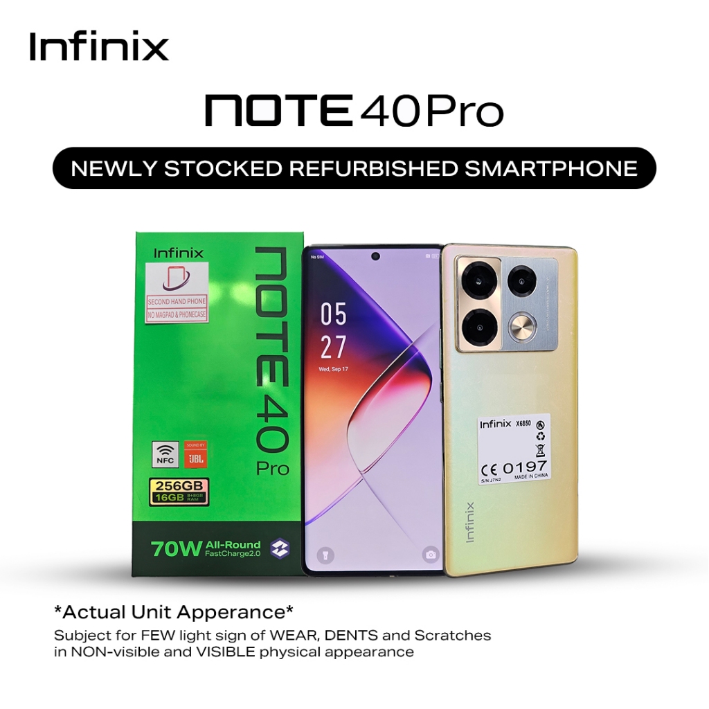 REFURBISHED Smartphone - Infinix NOTE 40 Pro, (up to 16GB [8+256] (3 Months Local Warranty)
