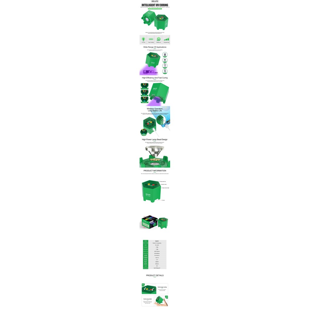 RELIFE RL-014D Smart UV Curing Light Wireless Charge 5W Fast Curing For UV Glue Solder Mask Oil Resin Glue UV Curing Lamp