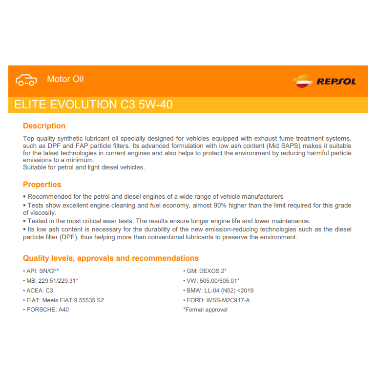 REPSOL ELITE EVOLUTION C3 5W40 1L