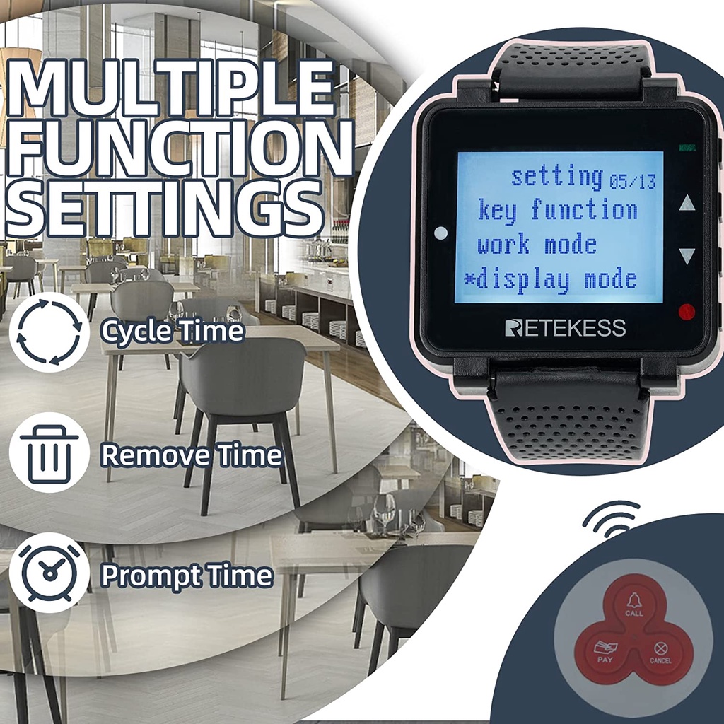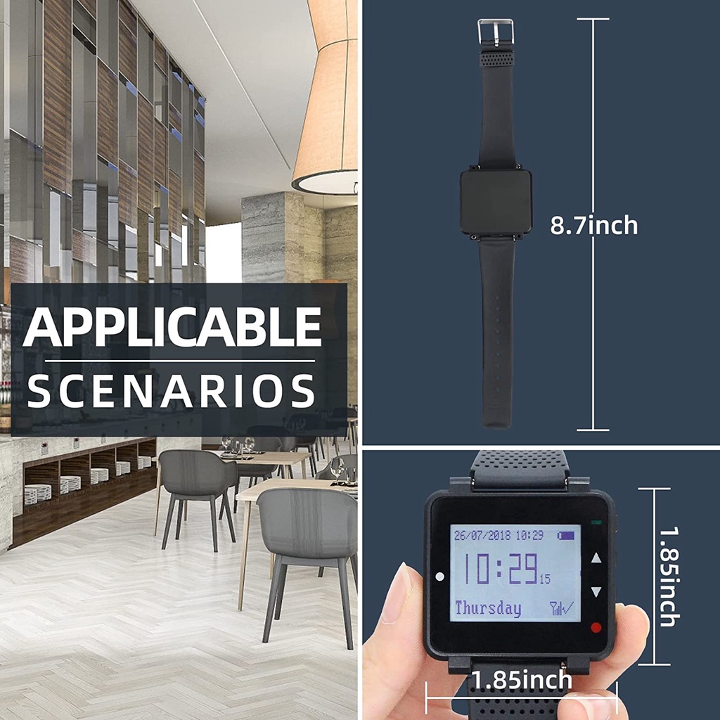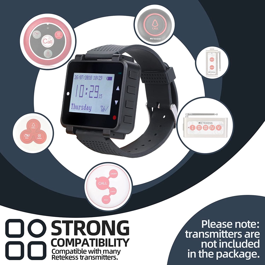 Retekess T128 Restaurant Pager System Customize Wrist Watch Pager Buzzer Rechargeable Caregiver Pager Compatible with Multiple Call Buttons