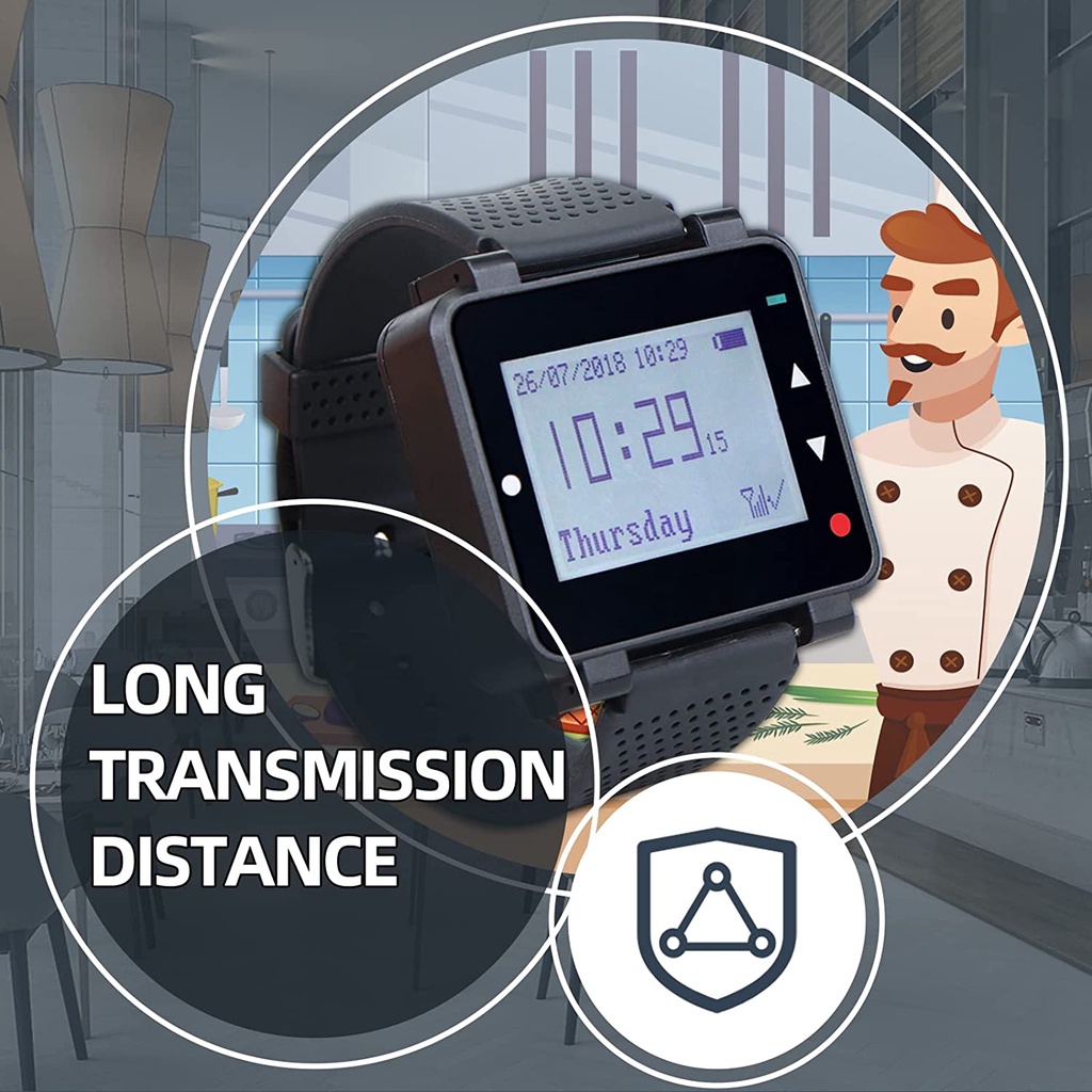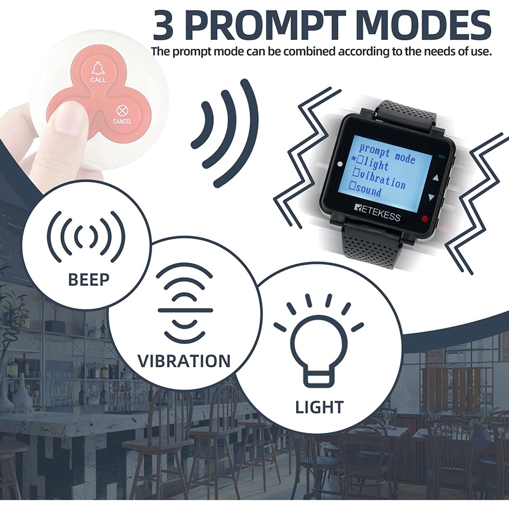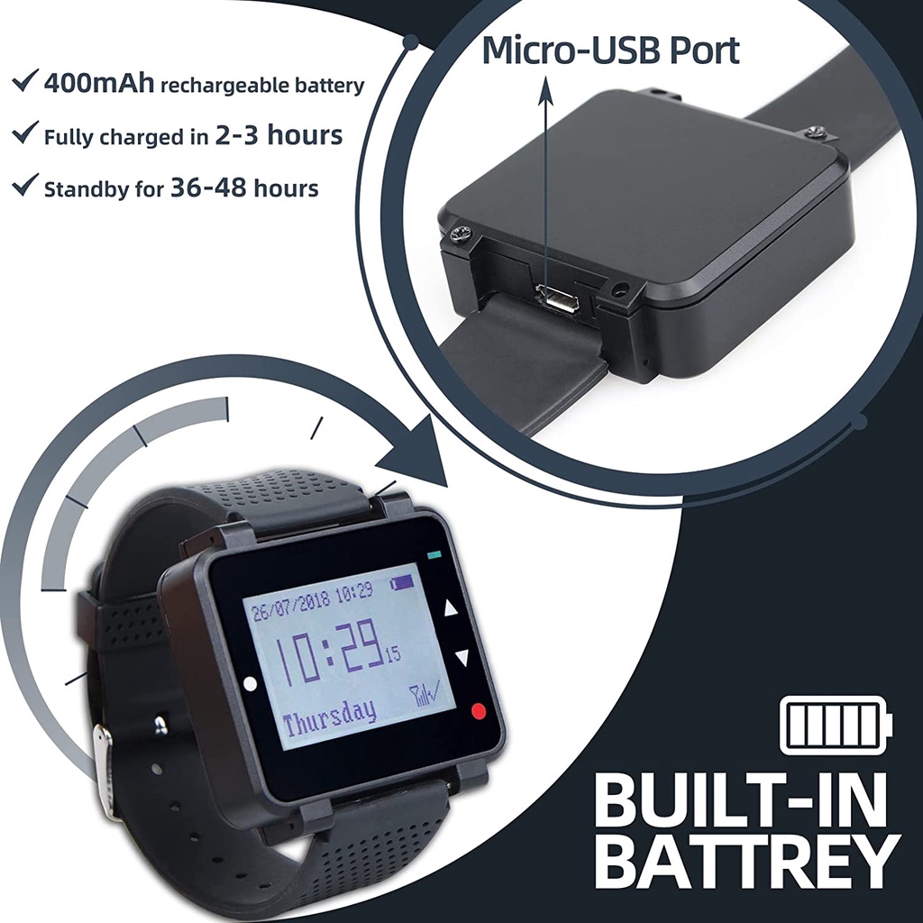 Retekess T128 Restaurant Pager System Customize Wrist Watch Pager Buzzer Rechargeable Caregiver Pager Compatible with Multiple Call Buttons