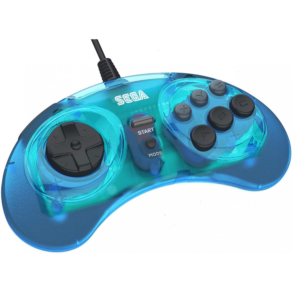 RETRO-BIT SEGA GENESIS 8 BUTTON ARCADE PAD WITH USB (PC/MAC/STEAM/SWITCH) (CLEAR BLUE)