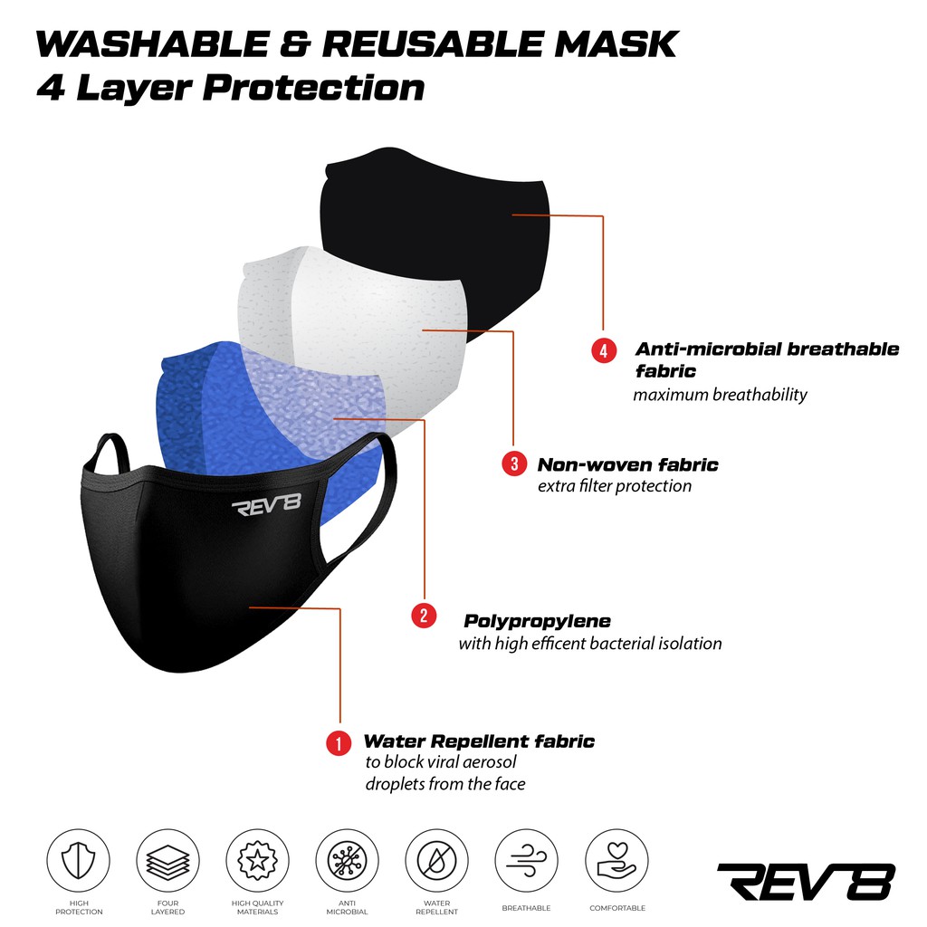 REV8 X NEXTCARE 4ply Reusable & Washable Face Mask Fabric Mask Unisex Laboratory Tested