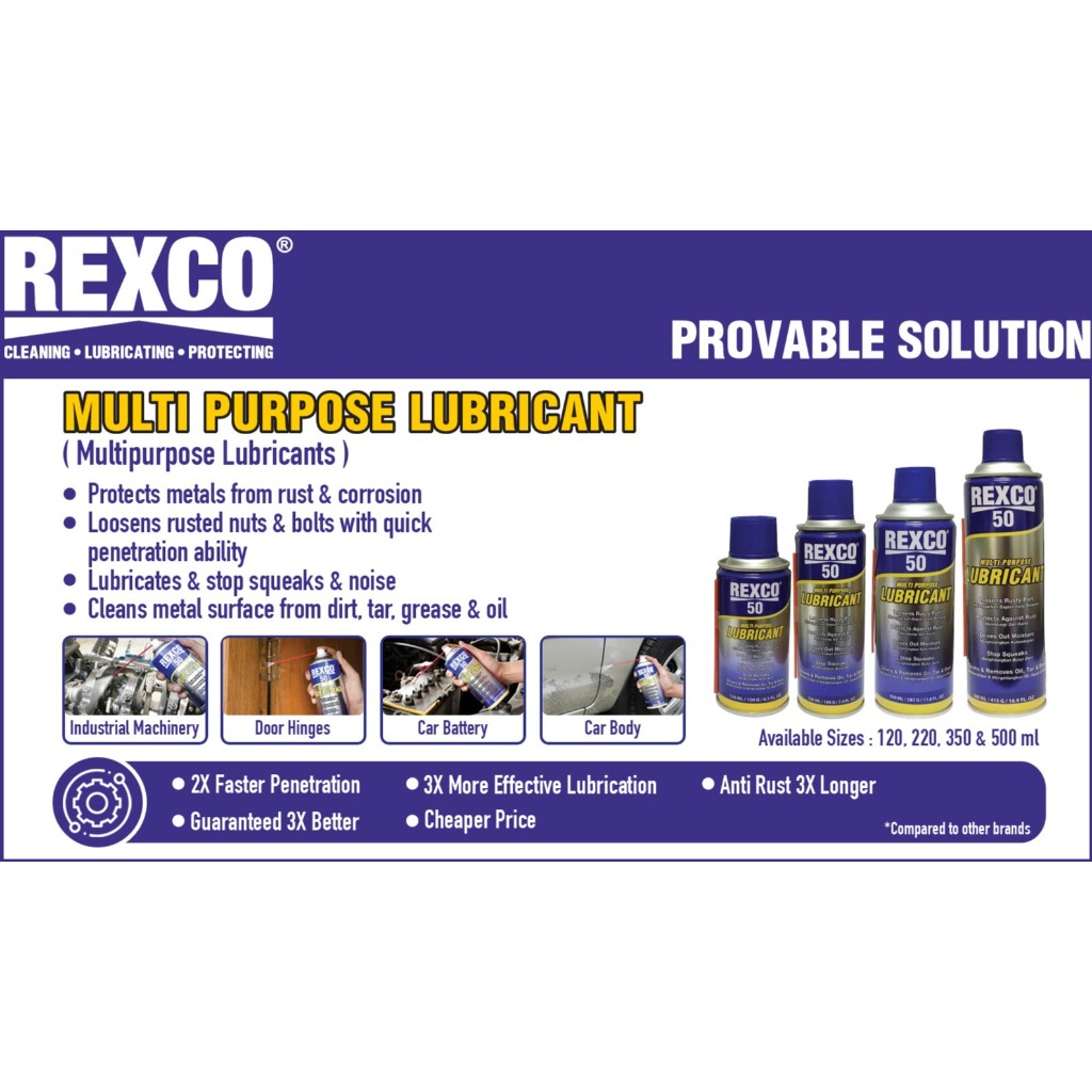 REXCO 50 Multi-purpose Lubricant (120ml, 220ml, 350ml, and 500ml)