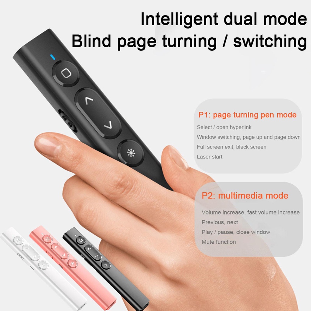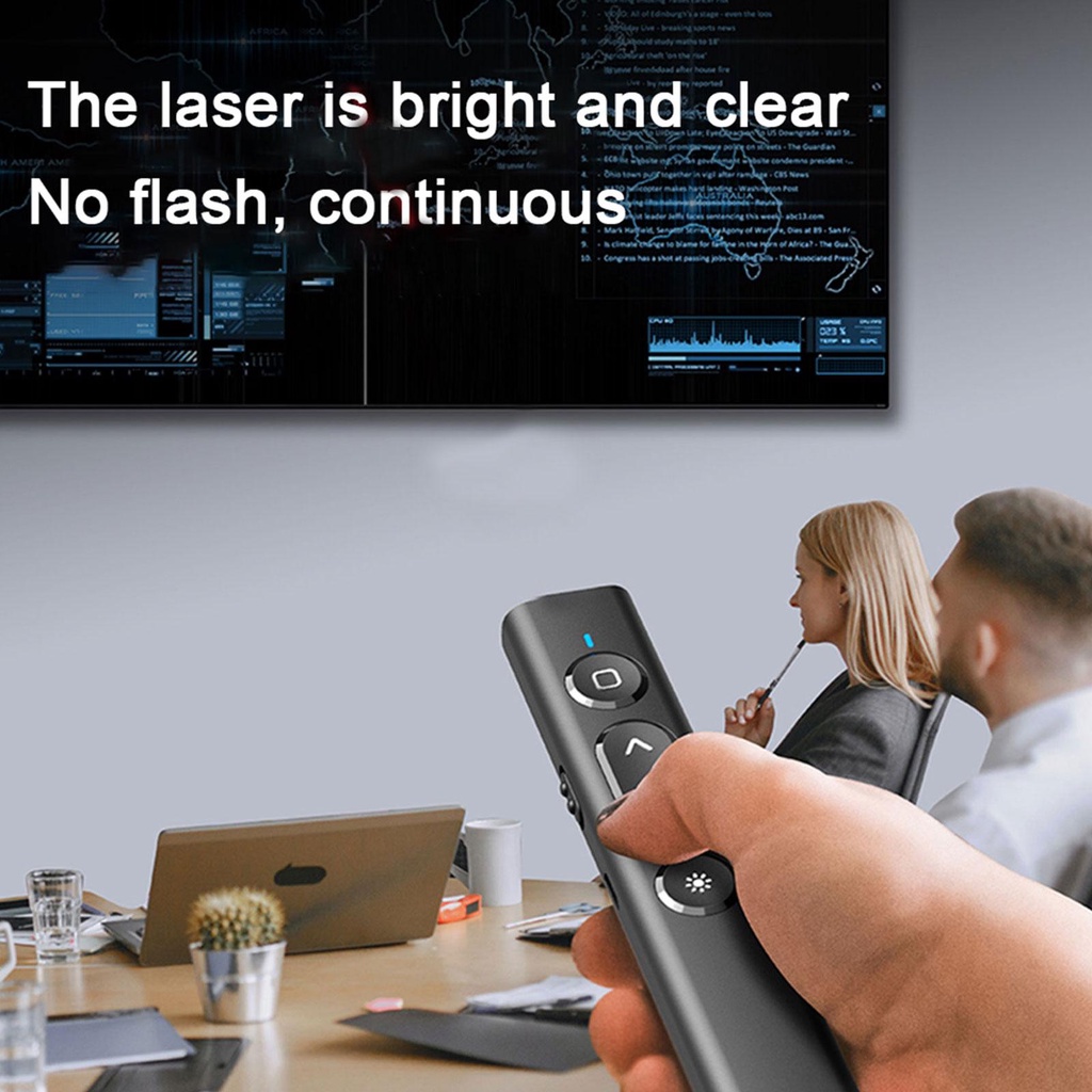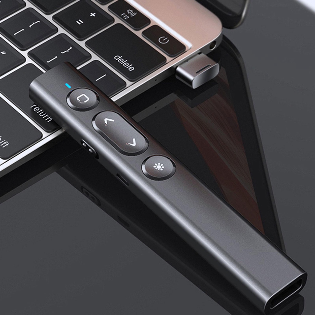 RF2.4Ghz Wireless PPT Remote Control USB Rechargeable Pointer Presenter Page Turning Pen with Red Laser for Powerpoint Computer/Laptop