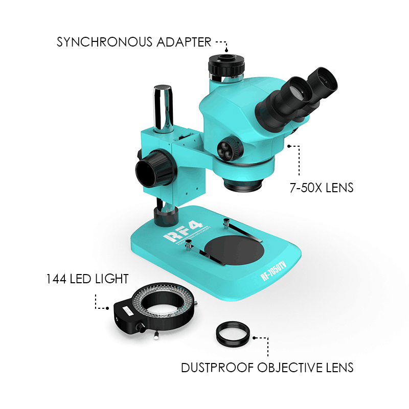 RF4 RF-7050TV Synchronous Focusing Microscopes Triocular Microscope 7-50X Zoom Lens Microscope