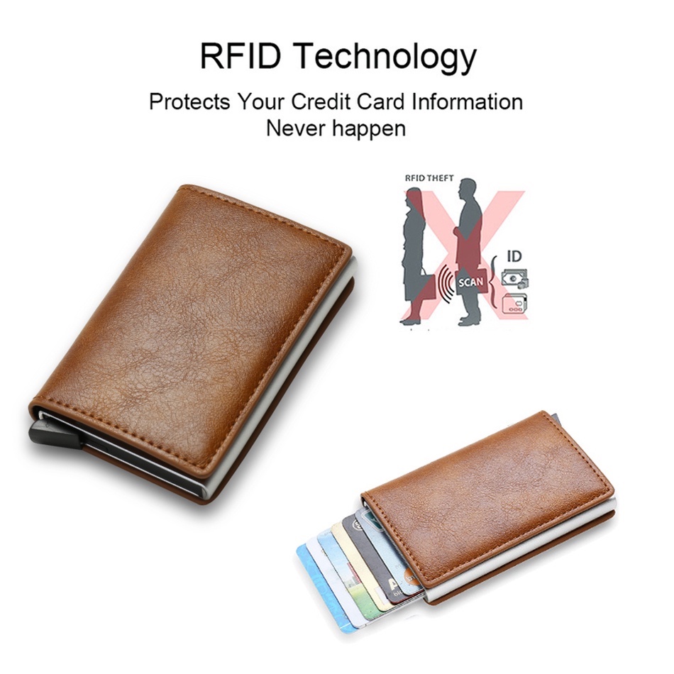 RFID Carbon Fiber Anti-Theft Swiping Automatic Pop-up Men's Card Holder Wallet Leather Men's Multiple Card Slots Wallet
