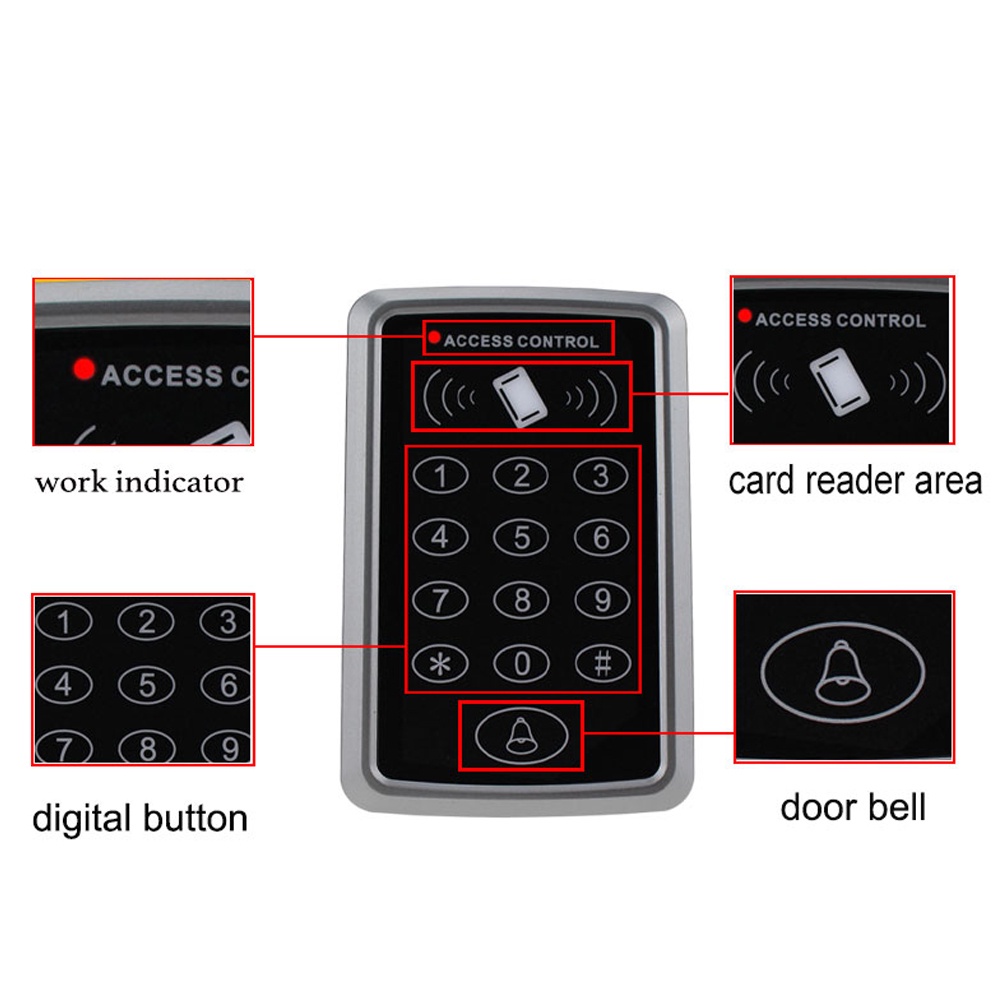RFID Controller Standalone Access Control Keypad with 10 EM4100/4200 keychains 125KHz Card Reader For Door Access Control System