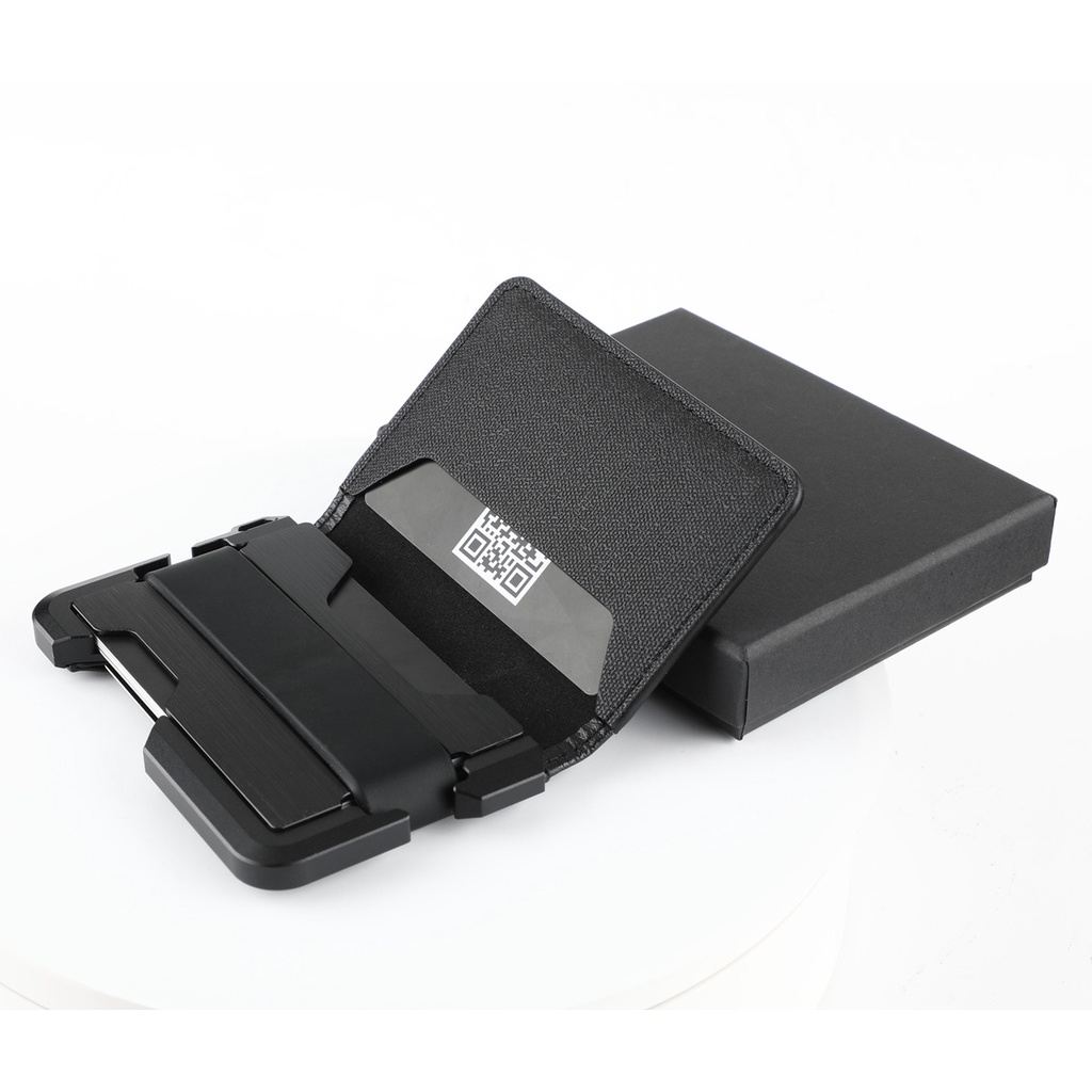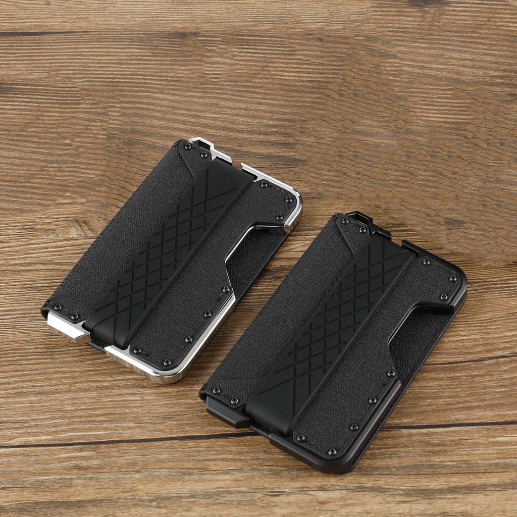 RFID Metal EDC Wallet with Leather Cover Ridge US Popular Money Clip Aluminium Card Holder Special Collection Card Case