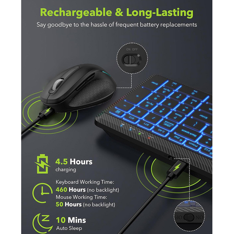RGB Backlit Silent Wireless Keyboard and Mouse Combo 2.4G Dual Mode Rechargeable Wireless Keyboard Mouse set for Desktop/Laptop