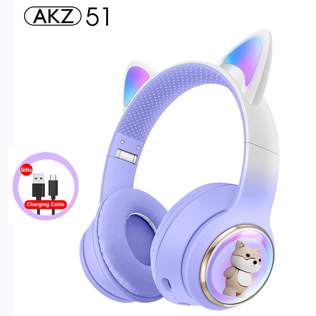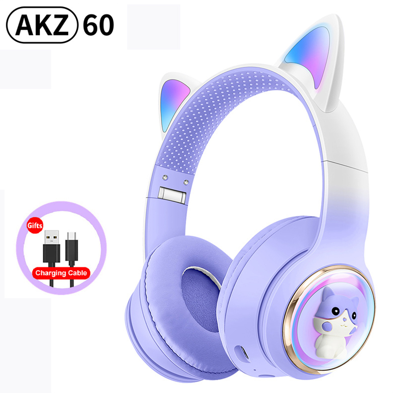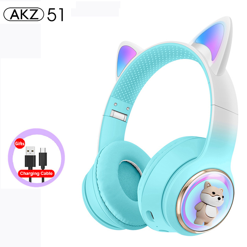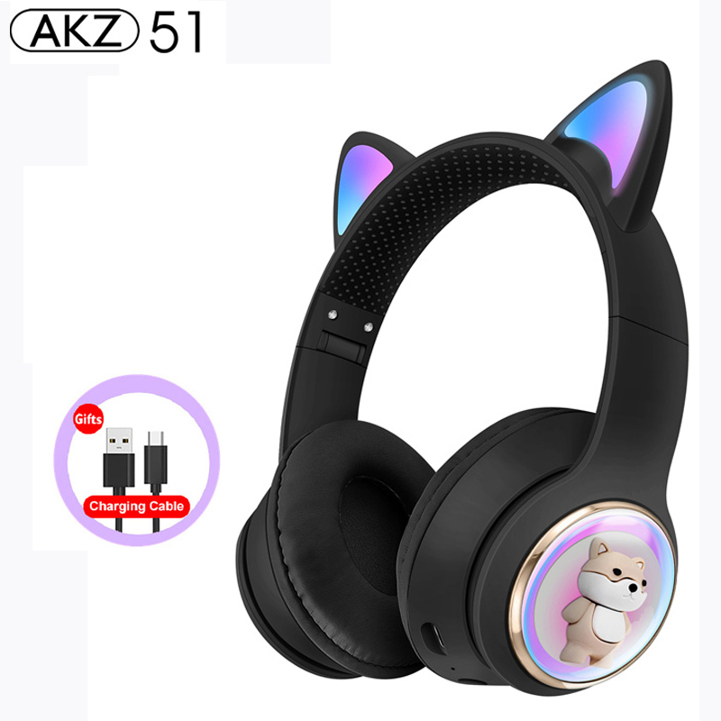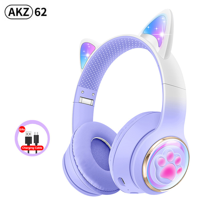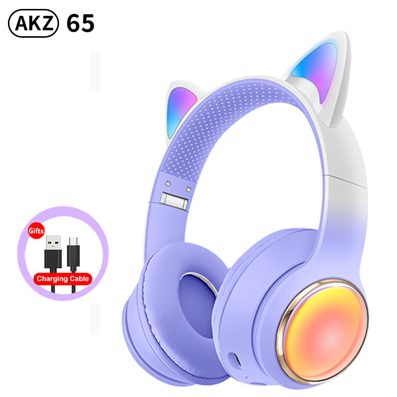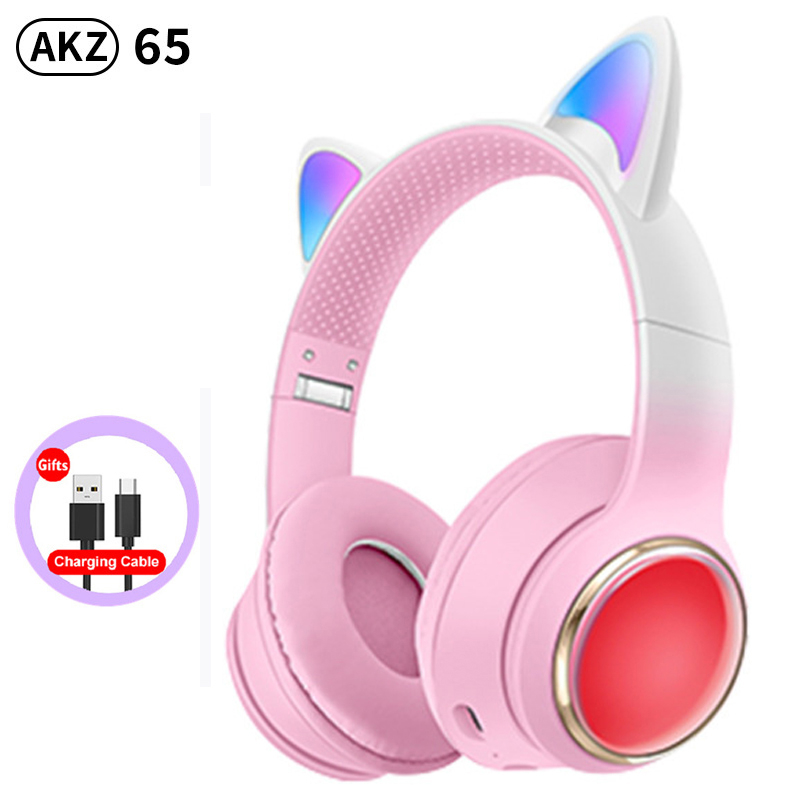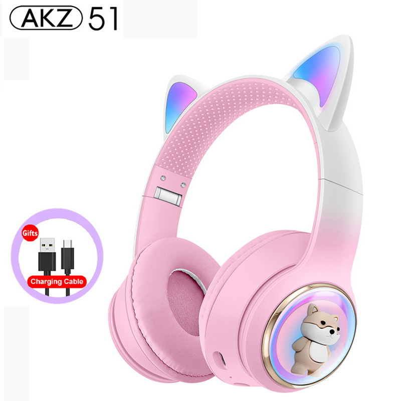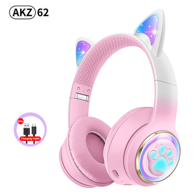 RGB Cat Ear Wireless Headphones for PC Cute 3D Space Capsule Cat Bluetooth Headset Foldable Gaming Headset For Kids Girls Gifts
