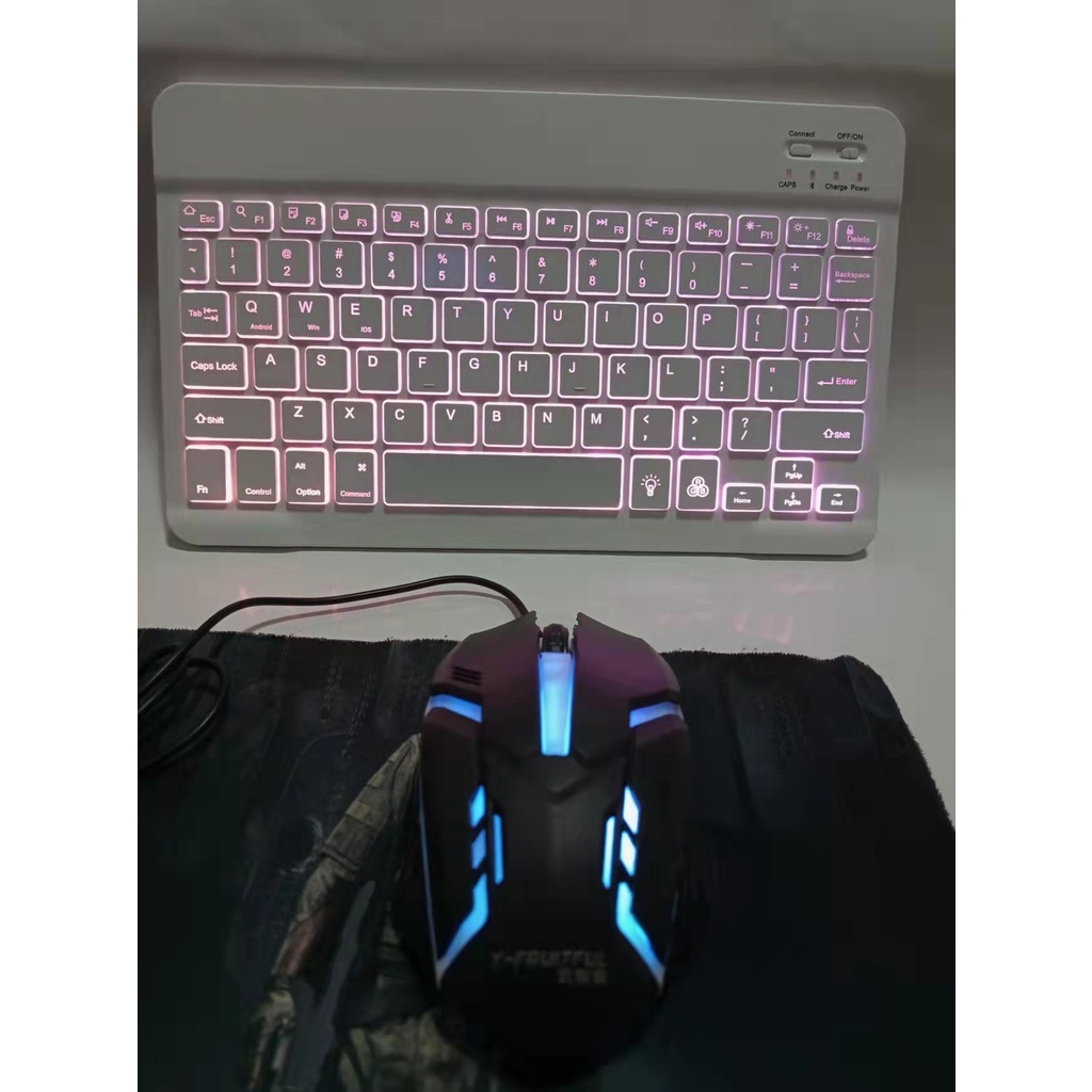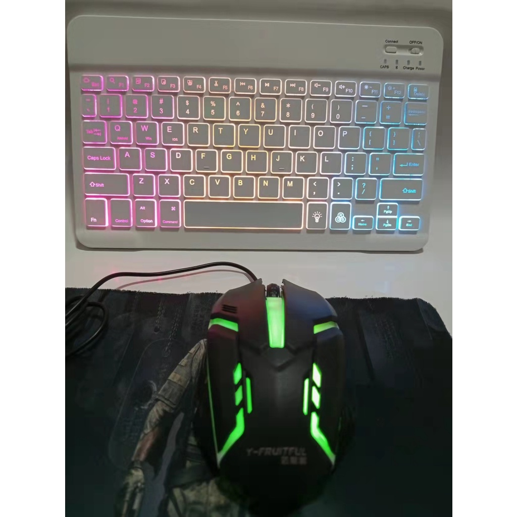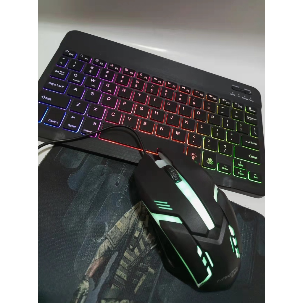 RGB Color 1O INCHES RECHARGEABLE SLIM BACKLIGHT RGB COLOR KEYBOARD WITH LED WIRED MOUSE SET