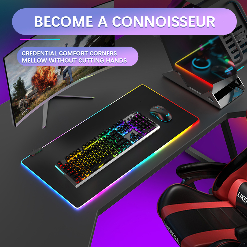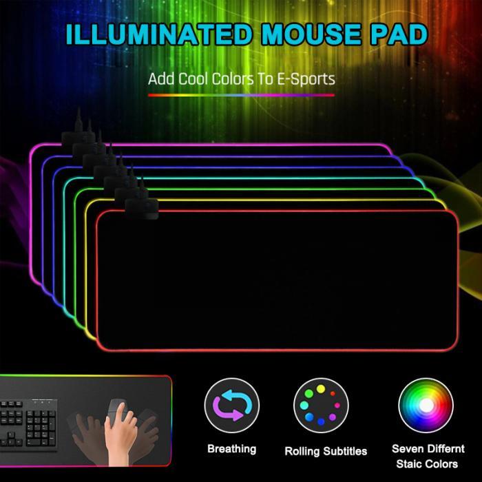 RGB Colorful LED Lighting Light Gaming Mouse Pad Soft Large Computer Game Mousepad (800*300*4mm)