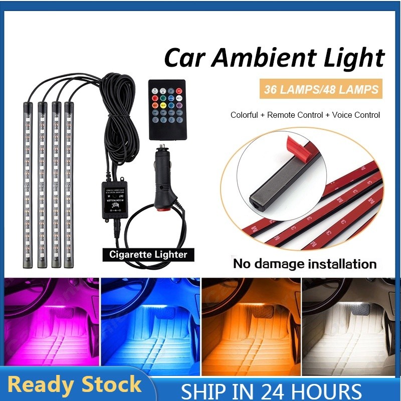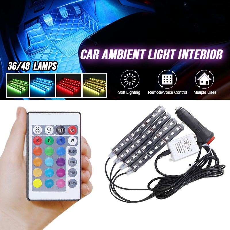 RGB LED 8 Color Car Interior Decorative Lights Car Foot Light 36/48 LED Atmosphere Ambient Light