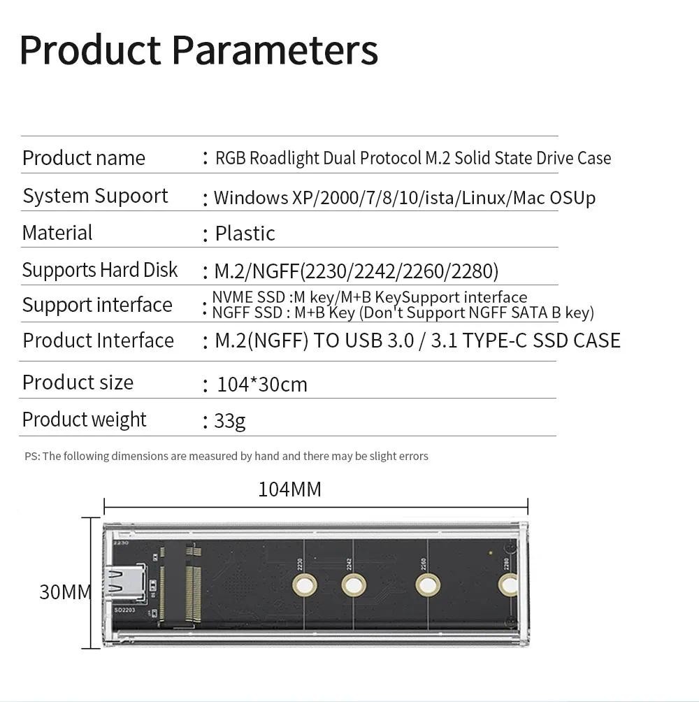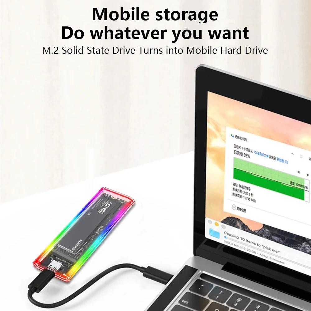 RGB M.2 NVME PCIe NGFF SATA Dual Protocol SSD Case Clear USB Type C 10Gbps PCI-E M2 SSD External Enclosure Hard M/B Key Disk Box
