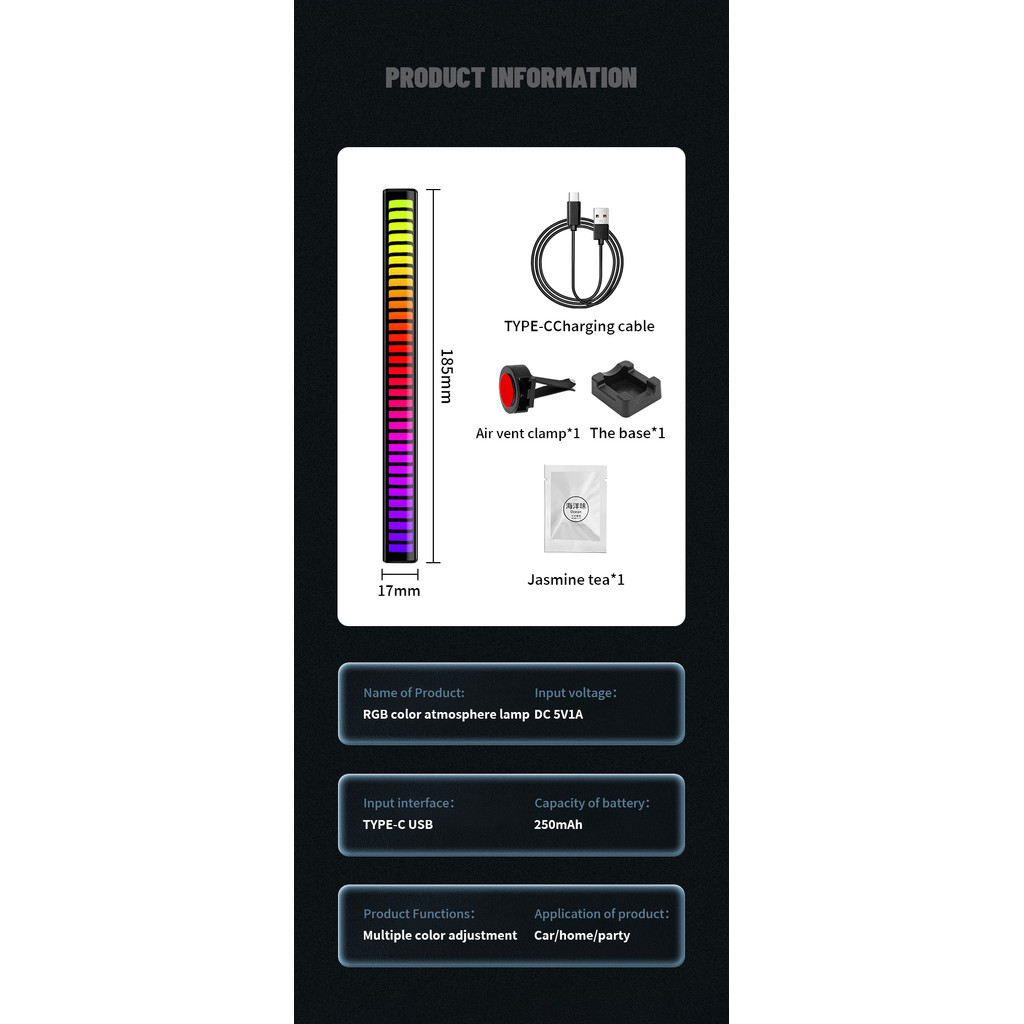 RGB Music Sound Control LED Ambient Light App Control Air Outlet Freshener Pickup Rhythm lamp for Car Party Home Decora Lights
