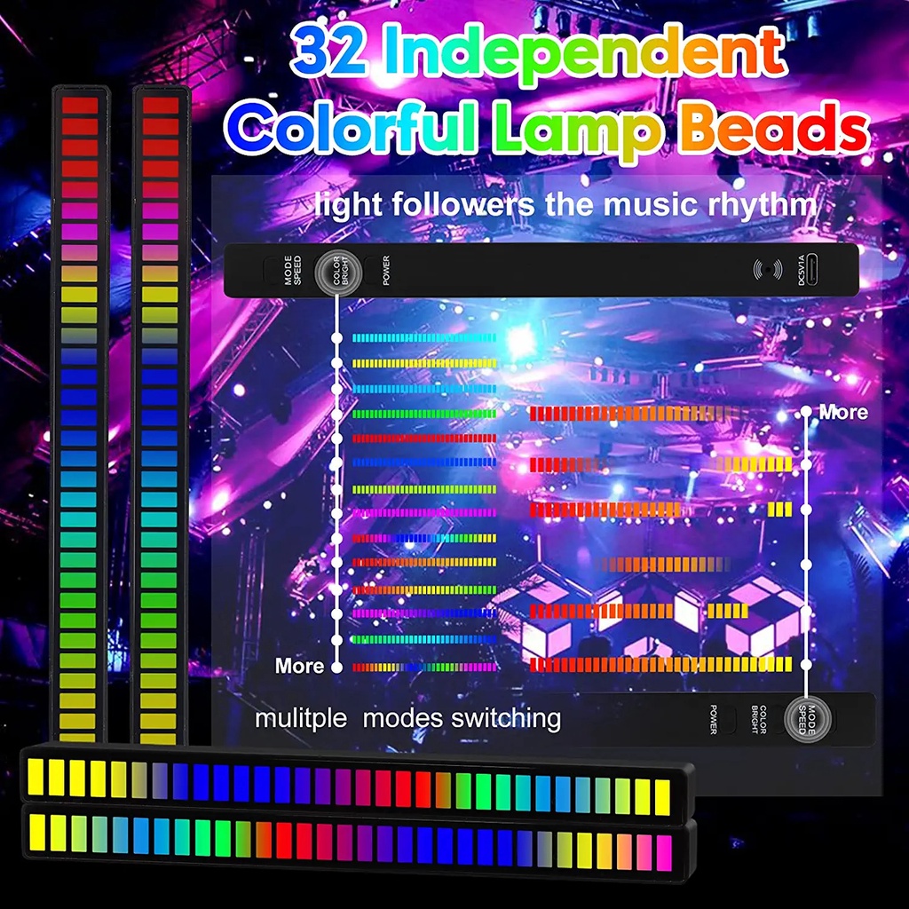 RGB Rechargeable Sound Control Light,Wireless Voice-Activated Pickup Music Rhythm Lights,Creative Colorful LED Ambient Light,with 8 Modes Music Sync 32-Bit Audio Spect