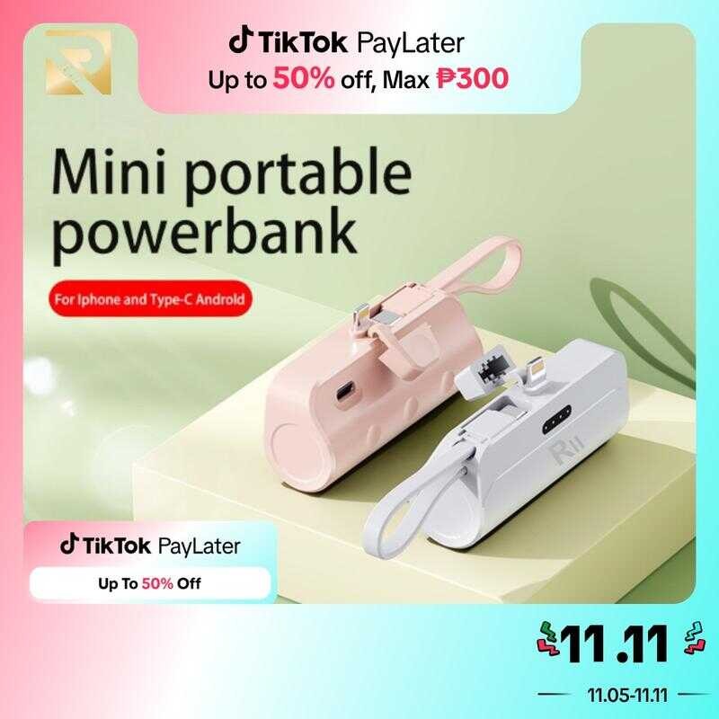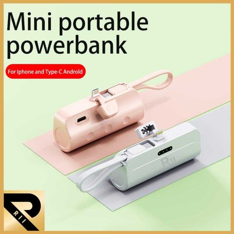 RII 2In1 5000Mah Mini Portable Power Bank W/ Built-In Cable FOR Type-C Iphone Port Powerbanks