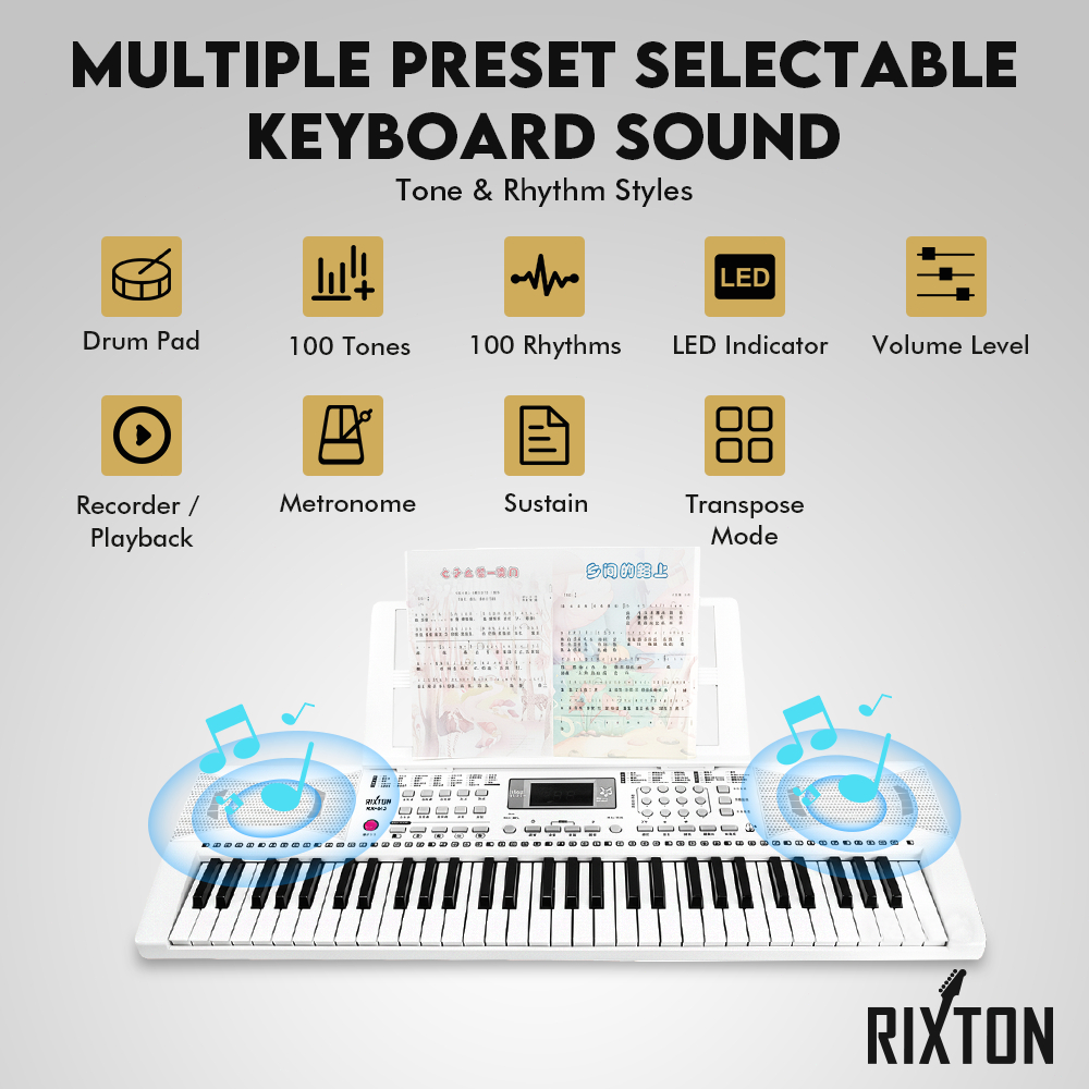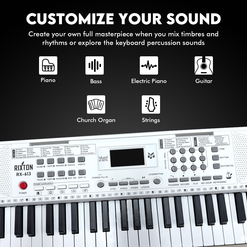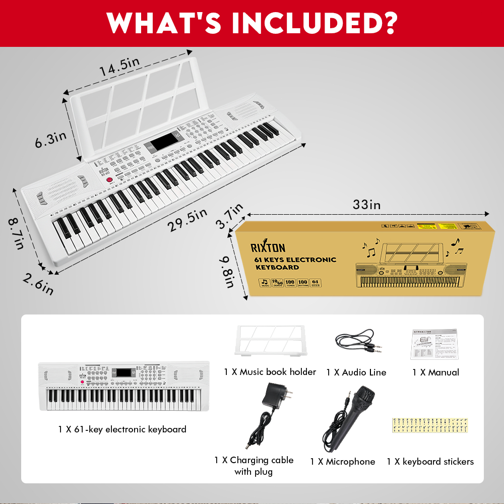 RIXTON 61-Key Digital Electric Piano Keyboard Portable Electronic Keyboard Beginners Multifunction