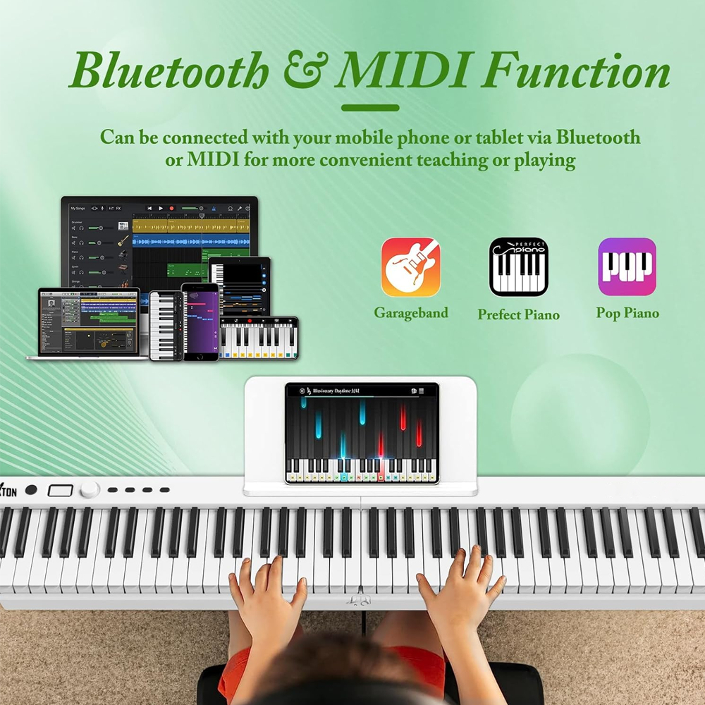 RIXTON Digital 88 Keys Foldable Piano Electric Keyboard Full Size Keys Bluetooth Function With Stand