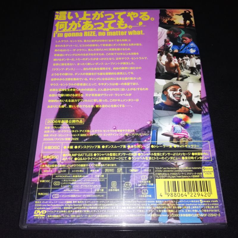 RIZE (a David LaChapelle film) DVD (2 Disc), Made in Japan ORIGINAL Hip-Hop Dance Documentary Movie