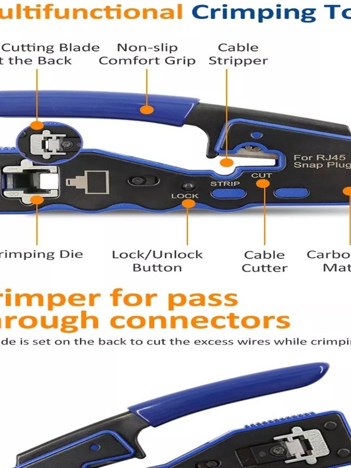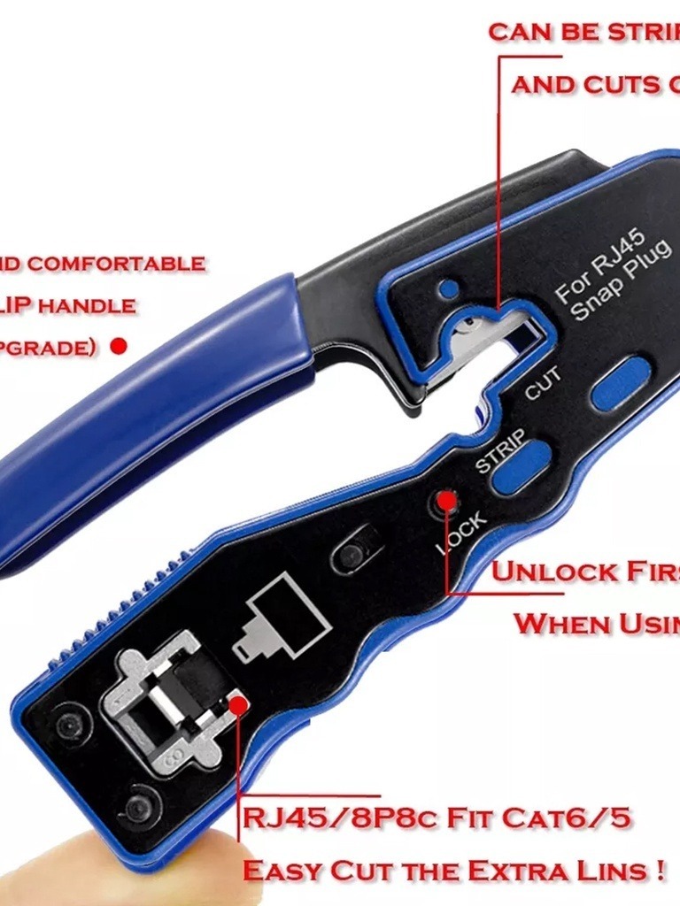 RJ45 Crimper, Crimping tool for Passthrough/ Passthru RJ45 Connector Network Cable Crimping Tool
