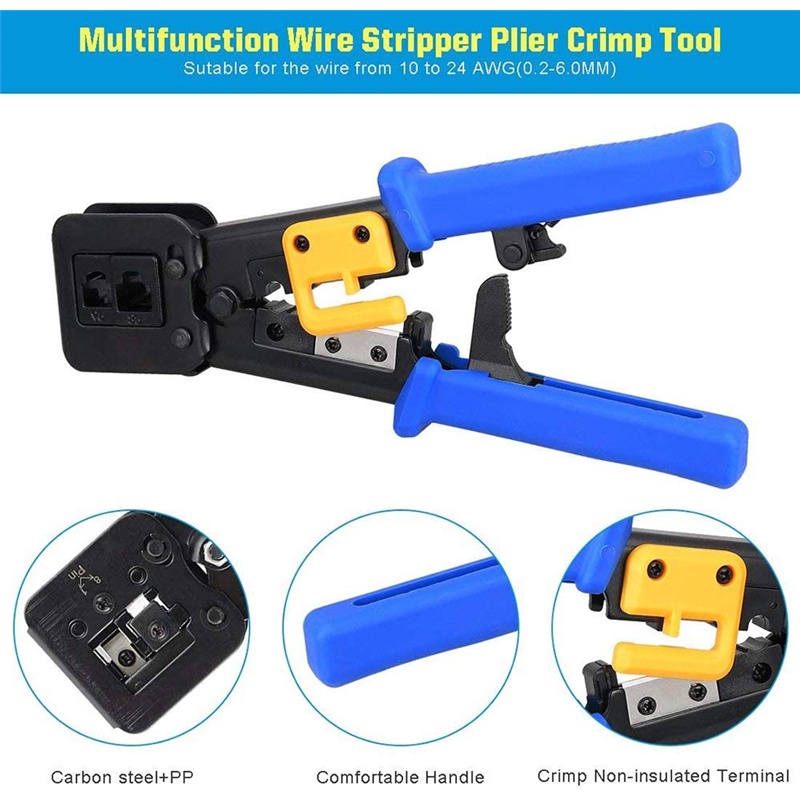 RJ45 Crimper, Crimping tool for Passthrough/ Passthru RJ45 Connector Network Cable Crimping Tool