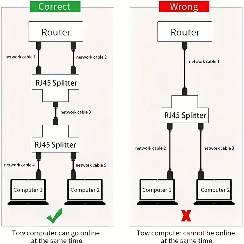 RJ45 Splitter Adapter 1 to 2 Network Connector Dual LAN Cable Extender 8P8C Plug Cable for Cat5 to 7
