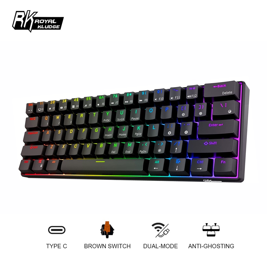 RK Royal Kludge RK61 60% Dual-Mode Hot- Swappable Wireless Mechanical Gaming Keyboard