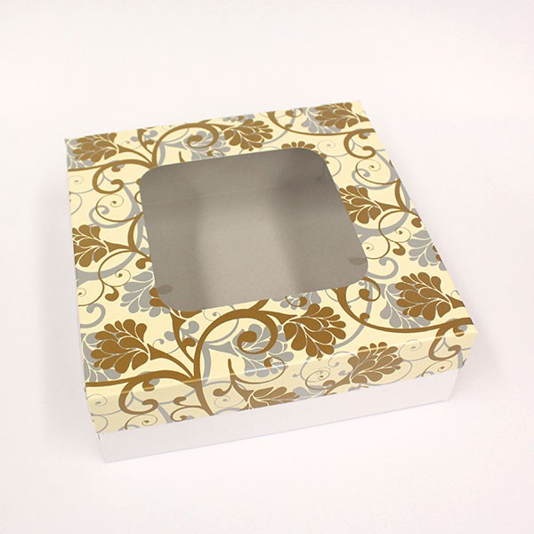 RM BOXES- 9" x 9" x 3" PREFORMED CAKE BOX / 2PC TYPE means TOP AND BOTTOM BOX