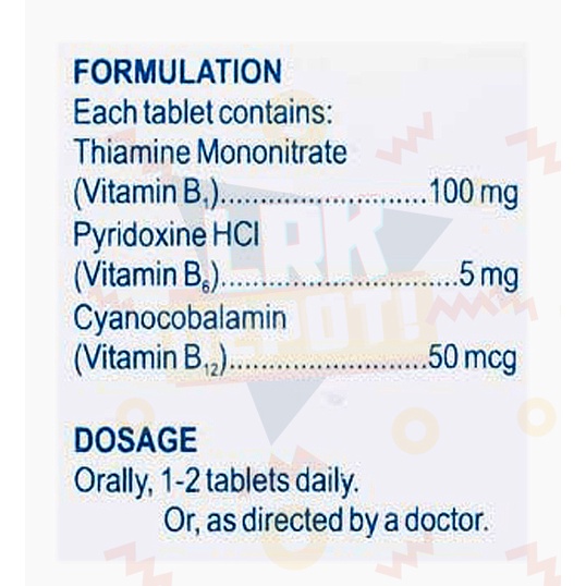 RM Vitamin B Complex (B1, B6, B12) 100 tablets alternate Neurobion, Neurogen E, Pharex, Rhea 100s