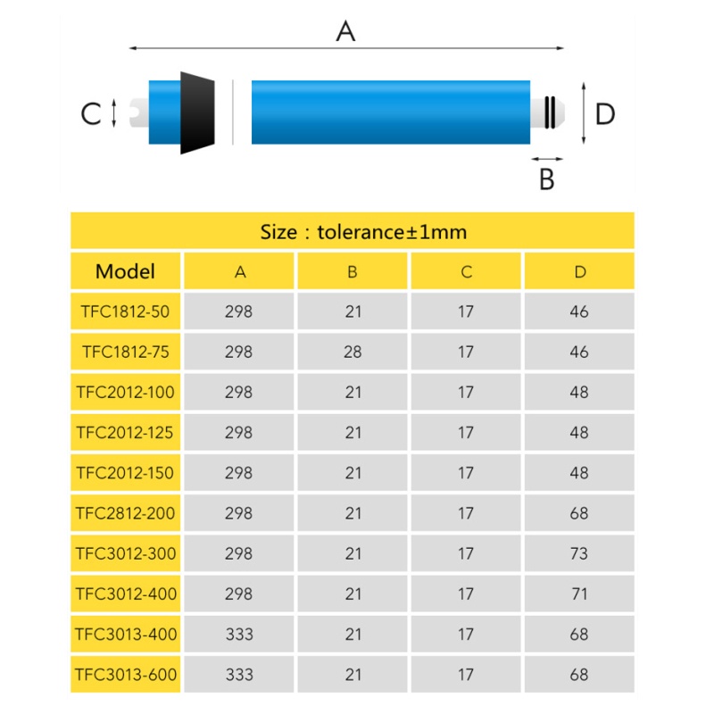RO Membrane Filter: Reverse Osmosis Membrane na Pambago para sa Water Purifier System, Universal na Membrane Water Filter para sa 50/75/100GPD