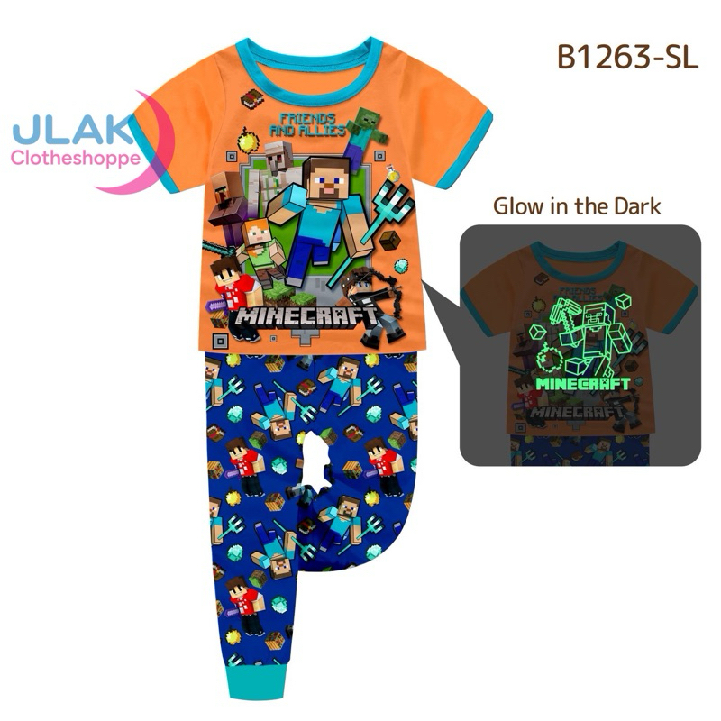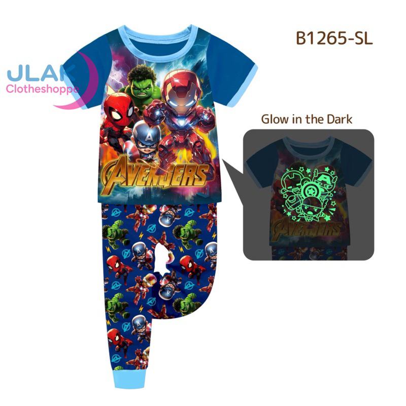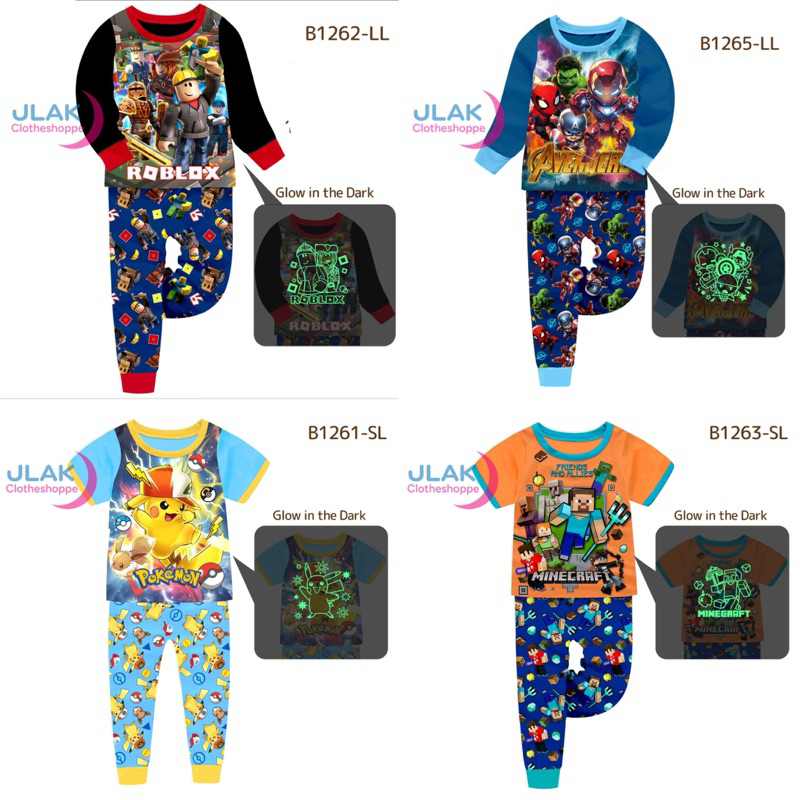 ROBLOX,MINECRAFT,AVENGERS,POKEMON Glow In The Dark Pajama Set For Boys SMALL SIZES SHORTSLEEVES