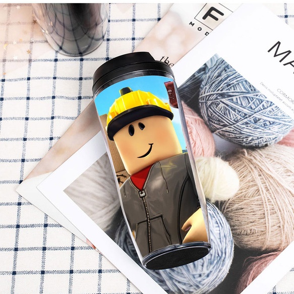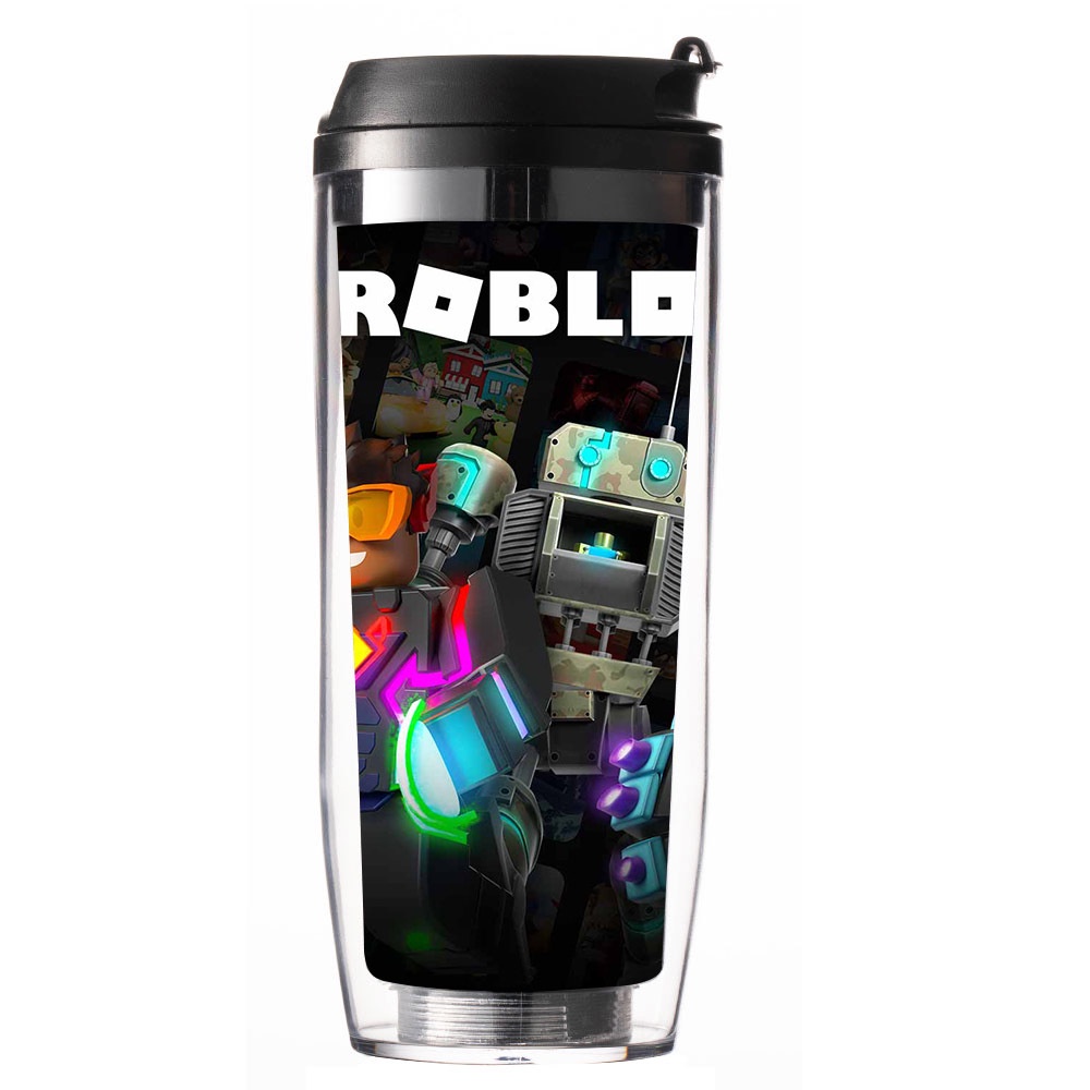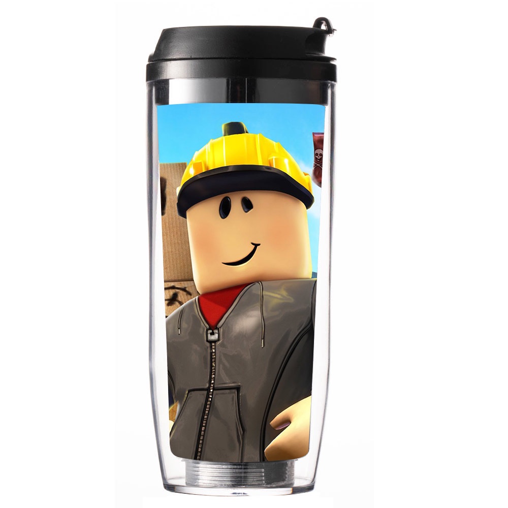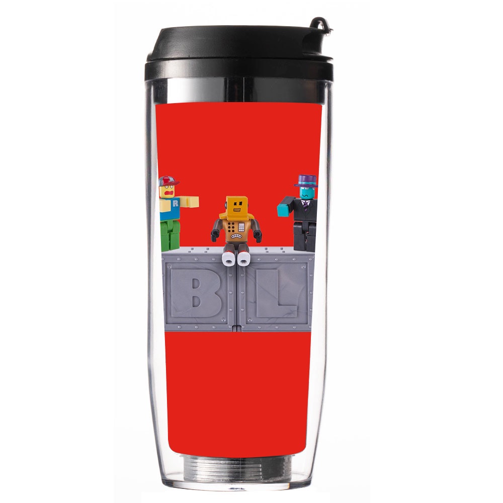 ROBLOX Straw Cup Double Layer Plastic Straw Cup Student Accompanying Cup Insulation Hot Water Cup Spill Resistant roblox kids Thermos