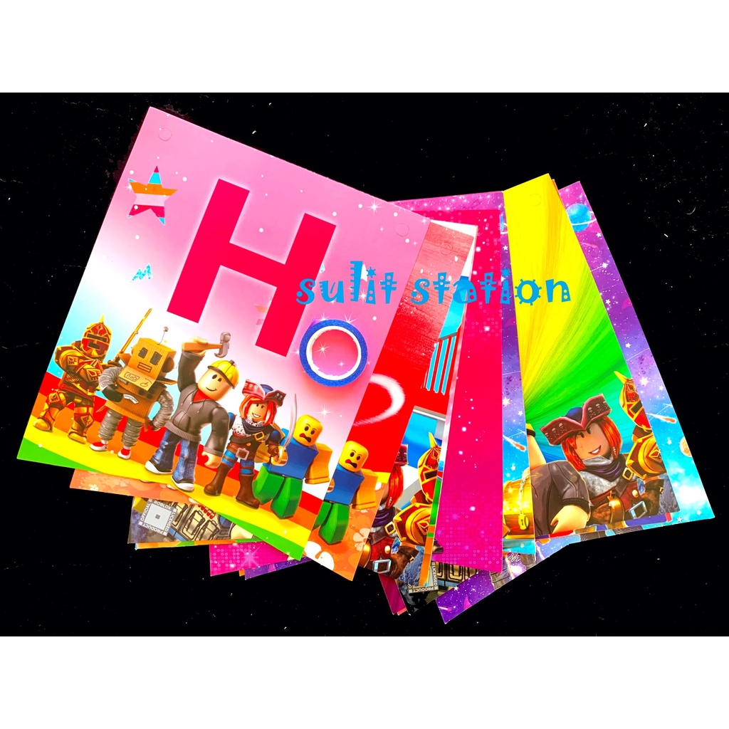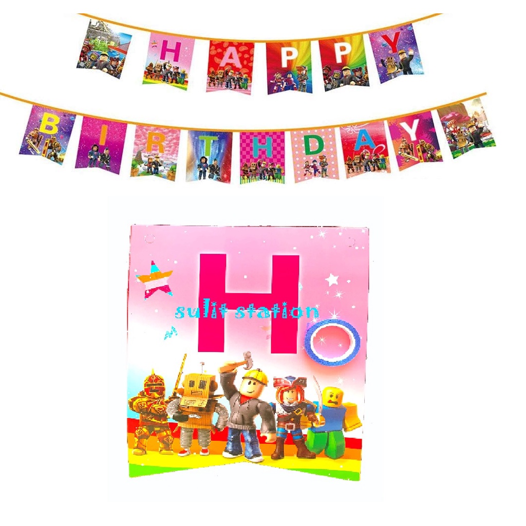 ROBLOXx MINIFIGURE PARTY LETTER HAPPY BIRTHDAY BANNER BANDERITAS FLAG favors need decorations supply