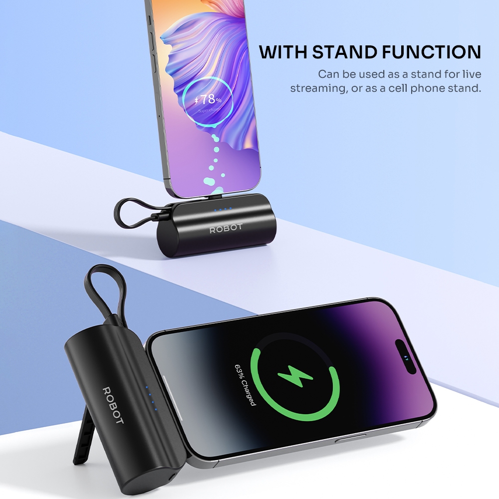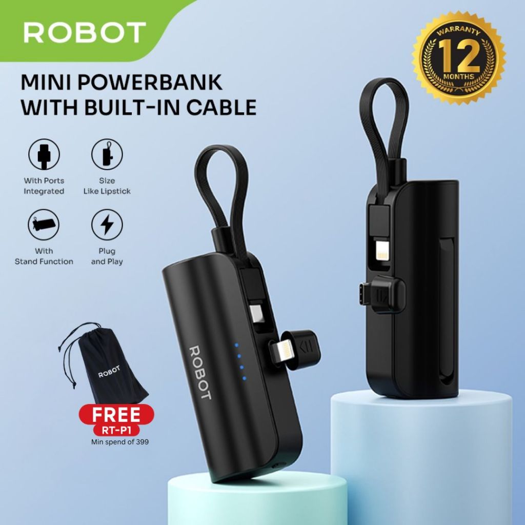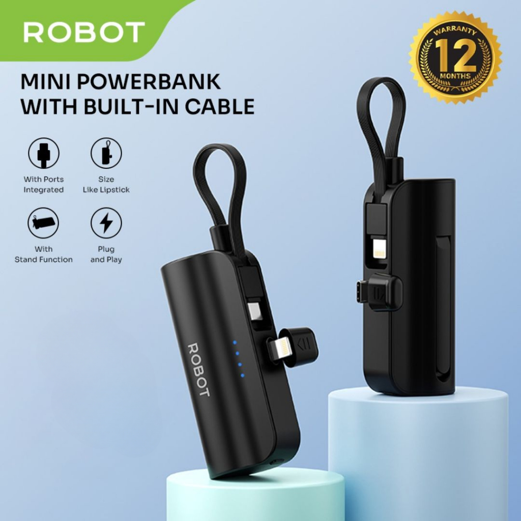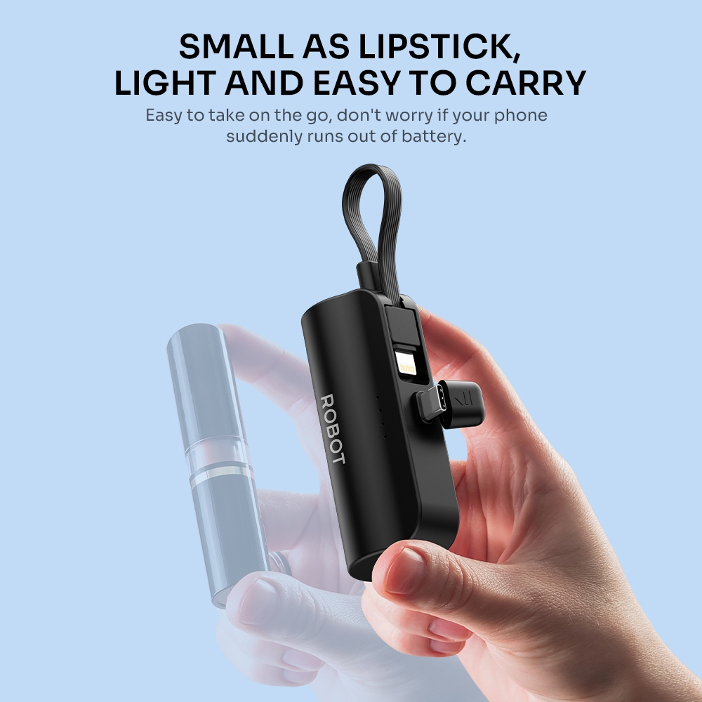 Robot RP-051L/C Mini Powerbank 4500mah IP USB C Travel Size Phone Cable Original- 12 Months Warranty