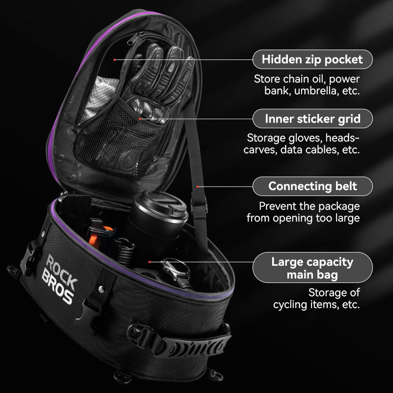 ROCKBROS Motorcycle Hard Shell Rear Seat Bag 12.5L Big Capacity Reflective Logo Saddle bag Quick Release Multi-function Rider Backpack
