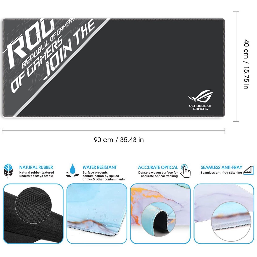 ROG Custom Mousepad Black Extended Mousepad Large Gaming Mousepad Stitched Edge Deskpad